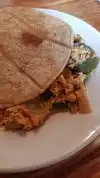 It just wasn't for us tonight very very noisy restraunt plus they had a guy with a guitar perched on the stairs singing his heart out all night in front of us, we are vegetarian & English tourists so it was a struggle to order correctly as they spoke Spanish & struggled with our accents in all the noise. We asked for no meat but got charged the same price as if we had meat in our fajitas which didn't seem right. There's no alcohol & its cash only. Not suitable for vegetarians nothing on the menu.