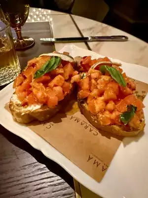We are a family of 4 with 2 younger children. We were seated quickly and they asked about theater plans and recent travel- and sped things up seamlessly. I enjoyed the burrata and prosciutto appetizer. My order daughter ate her appetizer of meatballs as a meal, and finished the entire dish which isn’t the typical thing for her. My swordfish had a picatta style topping that was delicious. The service and food were excellent. I would highly recommend Caramá.