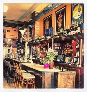 My husband and I just happened to look down the street and see the Stella sign so we thought maybe we had found a lunch spot. And we sure did! A very pleasant little oasis in the middle of the bustling city! I had a parsnip with ginger soup as well as a caesar salad. Delicious! The slices of crusty bread with salted butter were superb! The bar looked like it was original. We did not step into the back part of the restaurant but where we sat by the window was very nice.
