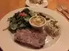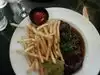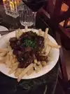 Food was ok but steak tartare too spicey. Too much worchestersauce. But what was upsetting us the most was the behaviour of the boss: he was very nervous and threw sauce on my sons pants. And he blaimed the charming young man who worked there for things the boy didn't do. Like forgetting to put a bottle on the check. The boy had nothing to do with that: we ordered the bottle at the boss and he himself forget to is put it on the bill. So overall we left the building quite upset and set. The charming young man deserved a better treament!