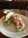 We found this cafe on Walnut Street whilst looking for a seat out of the sun. No sooner had we sat just inside the open window area a glass of iced cool water was offered. Rather than opt for a coffee we were tempted to look at the menu and were glad we did. Eventually we settled for the Caribou Cafe Burger with additional Swiss Cheese for me and Blue for my partner. Whilst waiting we were served slices of crusty bread and fresh butter scattered with salt crystals. The crust was as a good French bread should be and a delight having sampled the original in a previous visit to Paris! The burgers were well cooked, juicy with great flavour lying on a bead of sweet caramelised onion and the brioche buns spread with a delightful mix of cheese, peppers and just a hint of mustard. Washed down with a couple of glasses of Merlot Bordeaux and a constantly refilled glass of iced water from vert attentive waiting staff. I have added a photograph and apologise that I have already started eating this meal however it was looked too good to leave waiting for a photo. Not to be missed