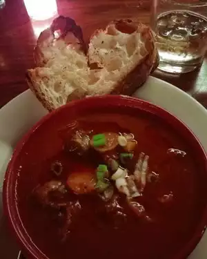We fell in love with this newer spot during our 3 night Portland visit. Quirky A-Frame. Wonderfully decorated inside & very comfortable. Gracious welcome. Great service. Highly recommend. We were going to have dinner & the appetizer menu was extensive & impressive that we ordered 4 appetizers & ate tapas style instead. I ordered the nightly cocktail special which, unnamed but was divine. A mix of mescal, Cynar & orange. A lovely complex mix. We ordered: calamari that came with lentils, beet salad (that really had beets in it!) with toasted hazelnuts, stuffed dates, (best ever) & one more that eludes me. Plenty of food. The portions were generous, left happy & we were thrilled with the entire experience of Carinas Lounge. You must try.