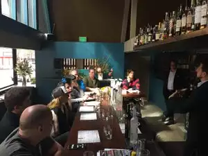 We were there on a Thursday for Happy Hour, a business meeting of sorts. By the time we left a group of twenty middle school kids were there, all ordering pizza. We sat in the bar area, which of the two spaces (restaurant or bar) is the more interesting of the two. This is the location of where Bastas used to be for many a year, but they finally left, and this place opened up around March 2017. The portions of the "small plates" were small. Indeed, too small. I left starved, and I was trying to make the business meeting a drinks and dinner kind of event, which I can successfully do at other Happy Hours in town. The server was gracious and dealt with us as best as she could. (We were an unpredictable foursome, each with our own oddities.) Would I go again? Yes, but just for the drinks. They were beautiful and tasty and worth visiting in and of themselves.