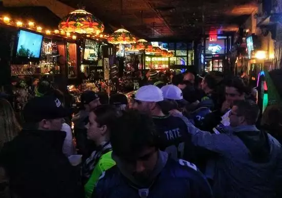 A LOT of Seattle and Seahawks fans for Seahawks games. A cool experience with lots of transplants from the NW in NYC gathering. No food but they allow outside food and even let people set up buffets during the games.
