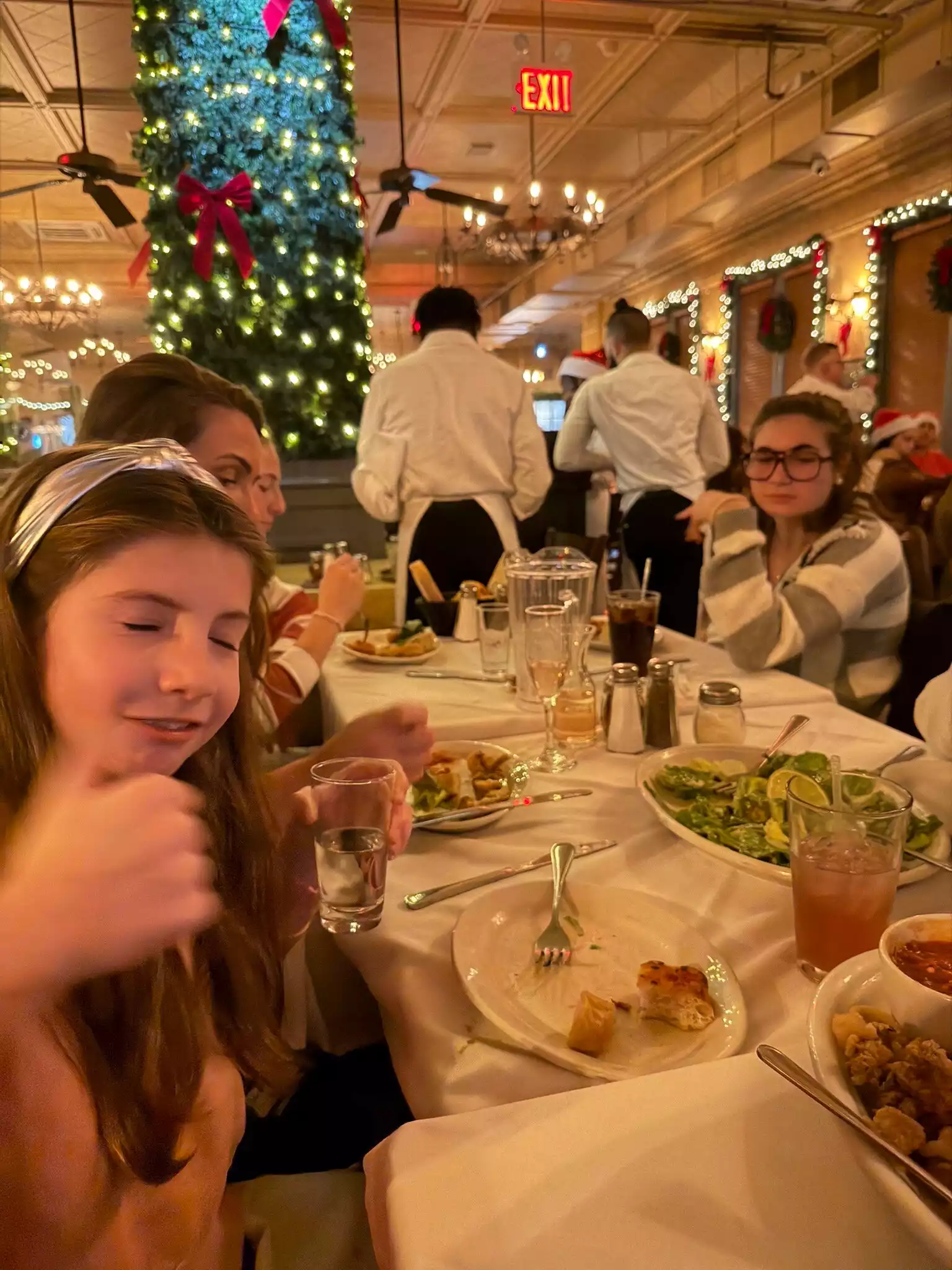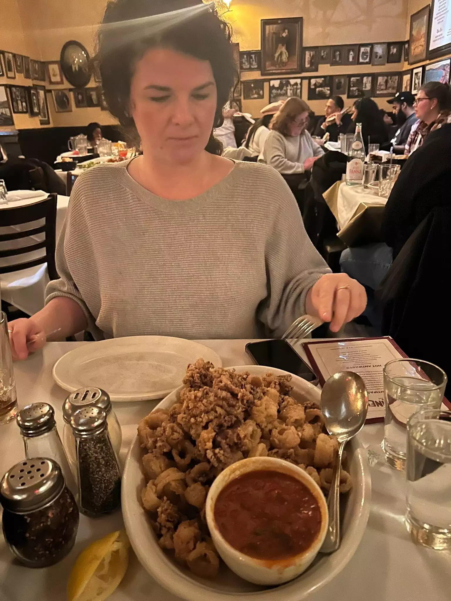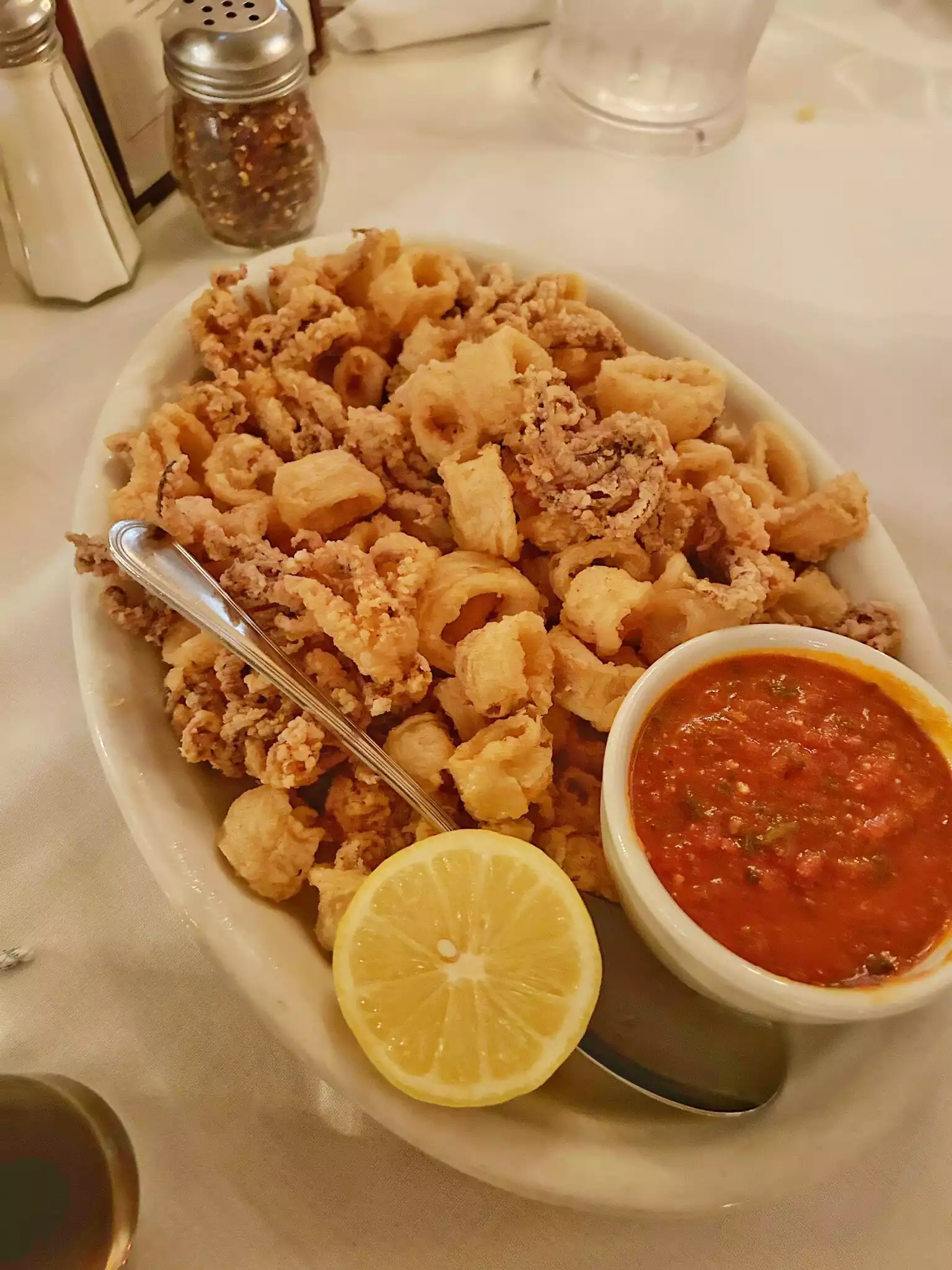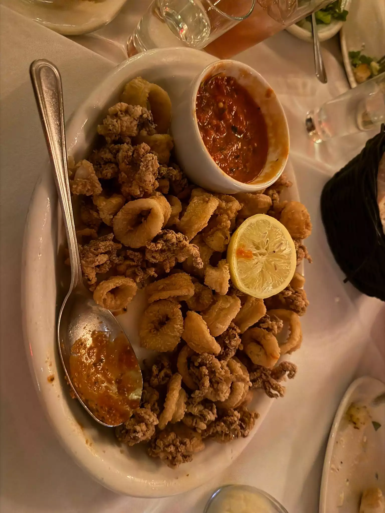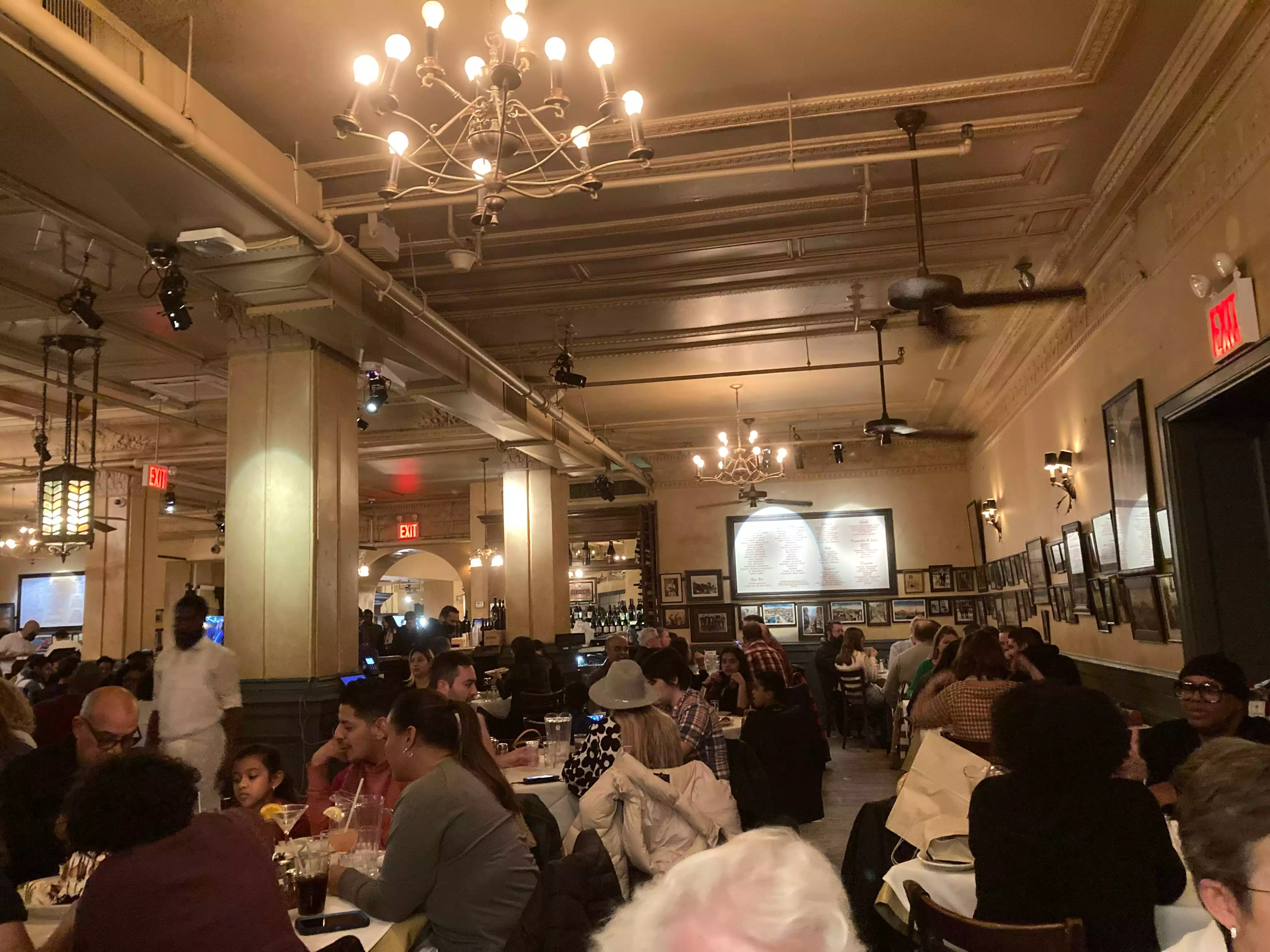 What a wonderful experience! This place is noisy, bustling, full of interesting people and just fun. We booked a table for 5 (which included two picky eater kids). We had to wait about 30 minutes, but there is a bar where you can have a drink while you wait so it’s not too bad. If you like to be seated as soon as your slot arrives, this won’t be it. We knew in advance that this was a restaurant that serves massive portions, so we knew to pick dishes that could be shared by all. We chose fried calamari to start, and then a porterhouse with peppers and onions as well as roasted potatoes. It was all delicious! We rarely order meat because many places can’t cook it right, but this was fabulous! We will definitely be back again someday!
