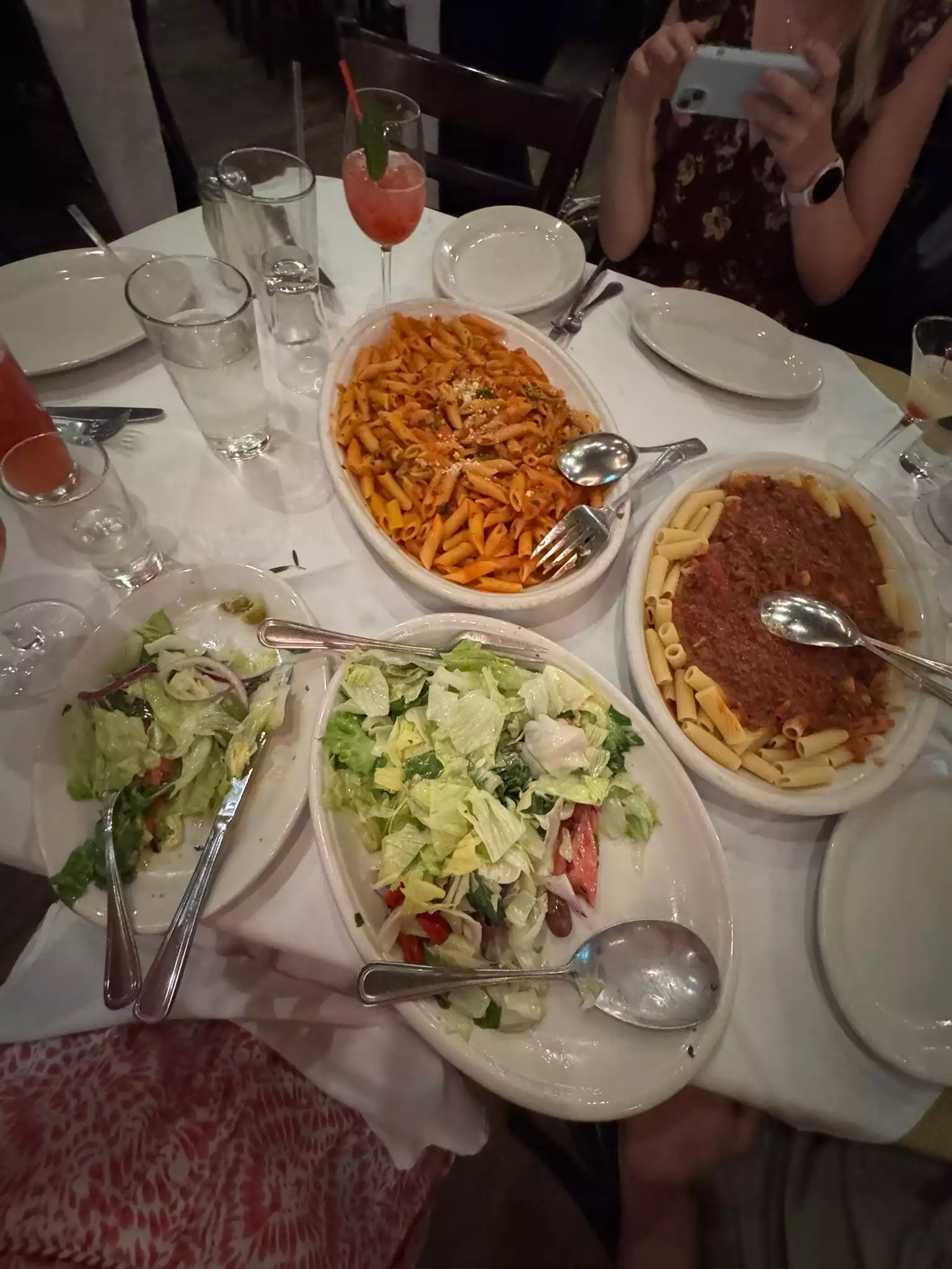 Had no clue this was a family style restaurant--it was myself, my daughter and my niece. The wait staff were super friendly and accommodating; the food was very, very good. I was incredibly surprised because usually family style restaurant food is just okay. They had decent gluten-free options which was nice; The Caesar salad dressing tasted homemade, and the bolognese sauce was excellent. Did we have a ton of leftovers? Yes! Not a bad thing when the food tastes that good. Really great, fun casual dinner that tasted delicious. Definitely would recommend for a group.