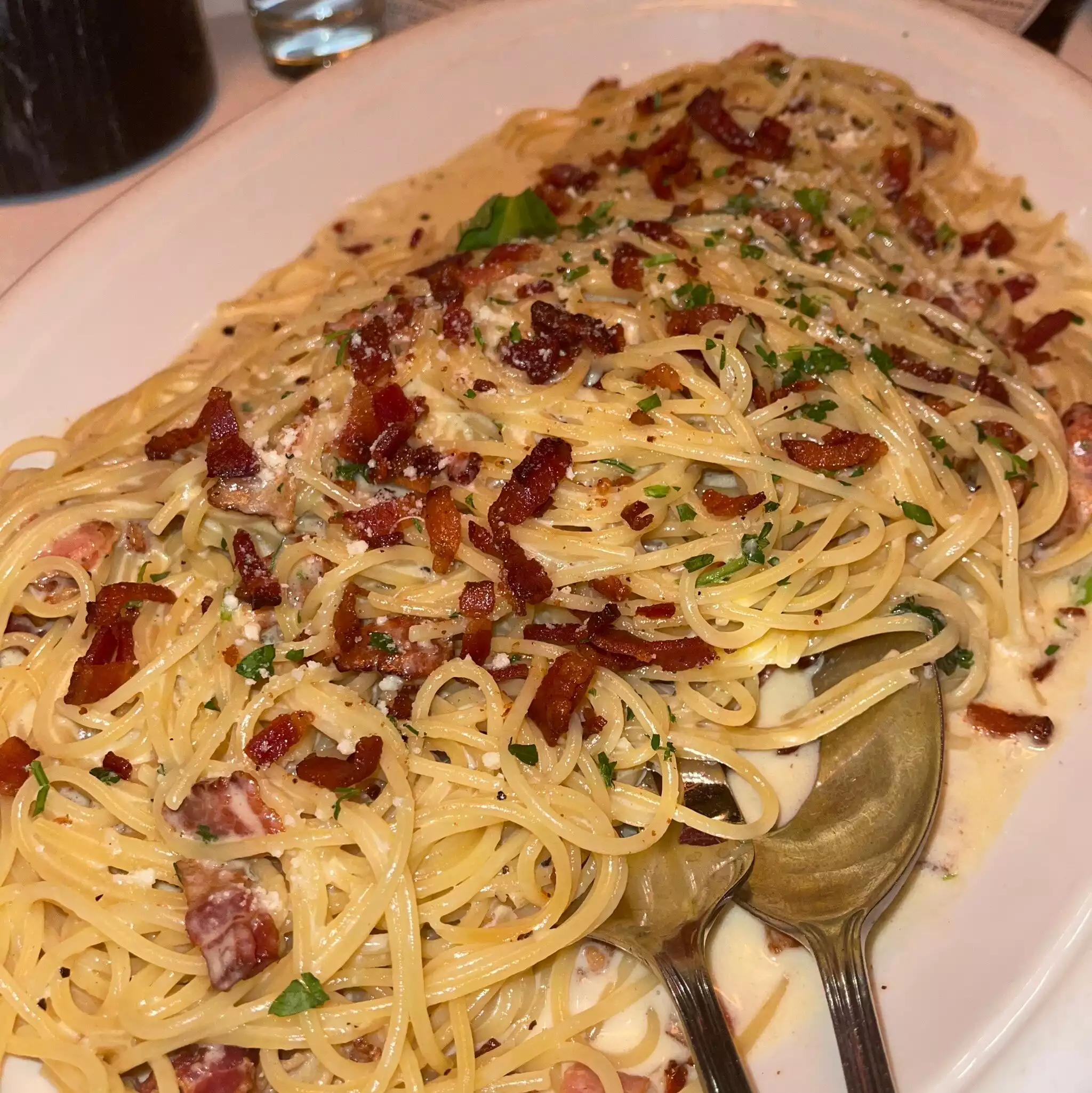 Carmine’s never disappoints. Always good food & great service. Family style Italian restaurant. My favorite go to dishes are the calamari, house salad, chicken parmigiana, meatballs, any pasta (all are good) stuffed mushrooms, Chicken Scarpariello and the veal. This time we tried the specials of the day for a change. Both were really good, rack of lamb and spaghetti carbonara. We also tried the cheesy garlic bread. Everything was really good.