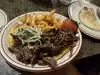 First time eating at this valley restaurant. We really enjoyed the variety of the combo platter. My only complaint with all the meats and chicken, no tahini or sauce of any that the food was prepared in or to add to. So a bit dry for my taste. The lamp strips had a wonderful seasoning. The house salad is very light but tasty. The hummus with mushrooms were excellent as we're the French fries and large pittas in a basket. I would recommend the place, good service So remember to ask for some side sauce AND a clean plate after appetizers for the main meal, which they never did for us. Enjoy!