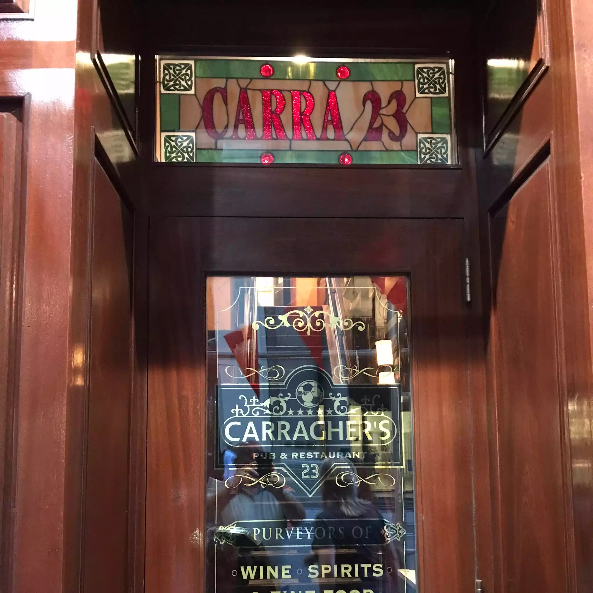 Went into Carraghers to watch a match (it had been cancelled) so stayed for breakfast, excellent food, fantastic Irish girl behind the bar and the decor is spot on. Loads of room with 2 pool table rooms, was a bit pricey as per the area it is in but no more than other bars. Would definitely recomend, we returned for evening meal and the food was just as good. Nachos were outstanding....