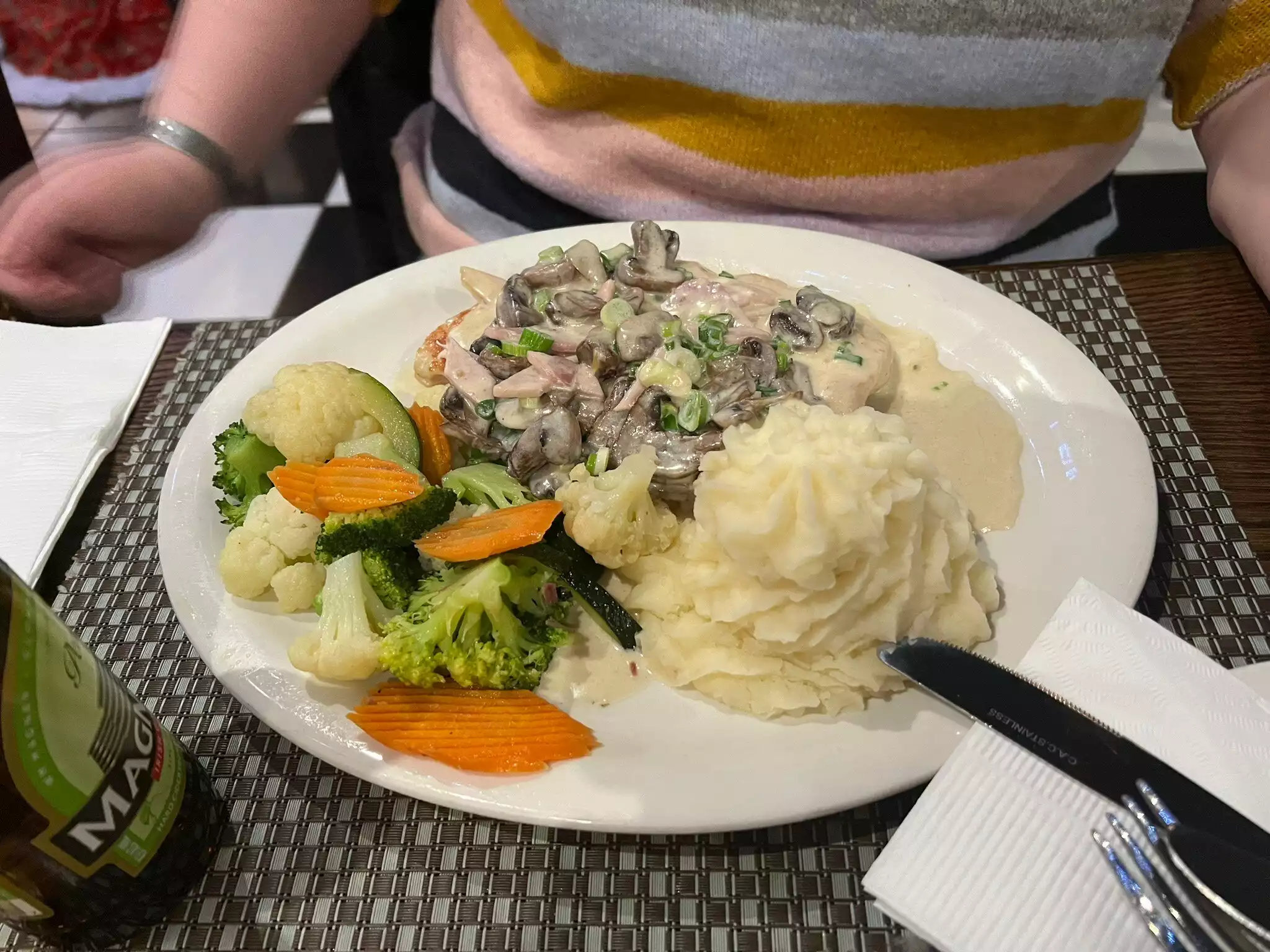 Great food choices on the menu, reasonably priced and tasty. Staff were attentive and overall it was a lovely experience - particularly if you are a Liverpool fan.
