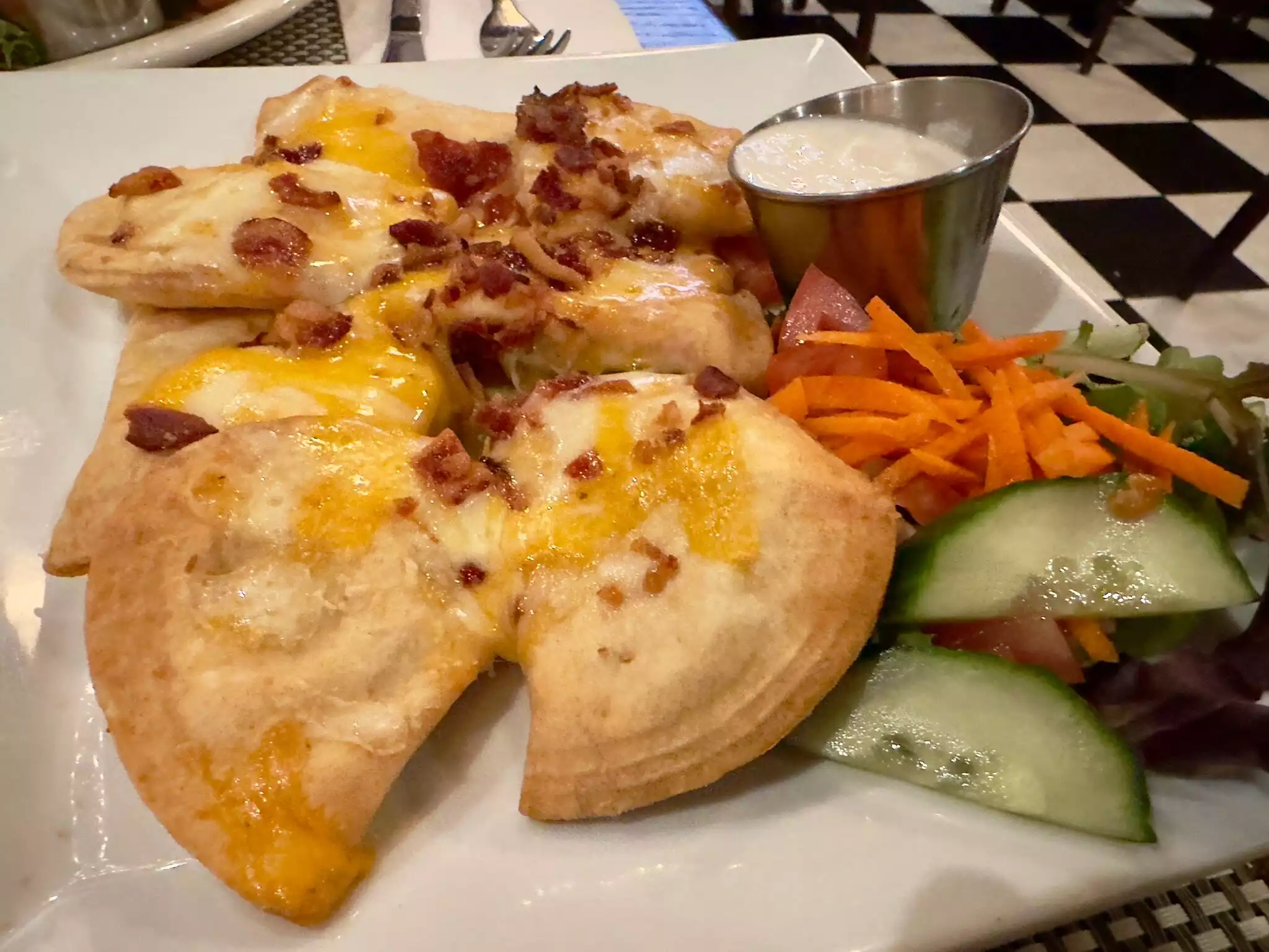 My partner and I visited for a late lunch on a Friday afternoon. He had the Cajun Burger cooked medium well (as ordered). The flavors were great and he was given a generous portion of side salad. I had one of the Specials - Short Rib Tacos. They were delicious. The BLT pasta salad was good too. Service was attentive and friendly.