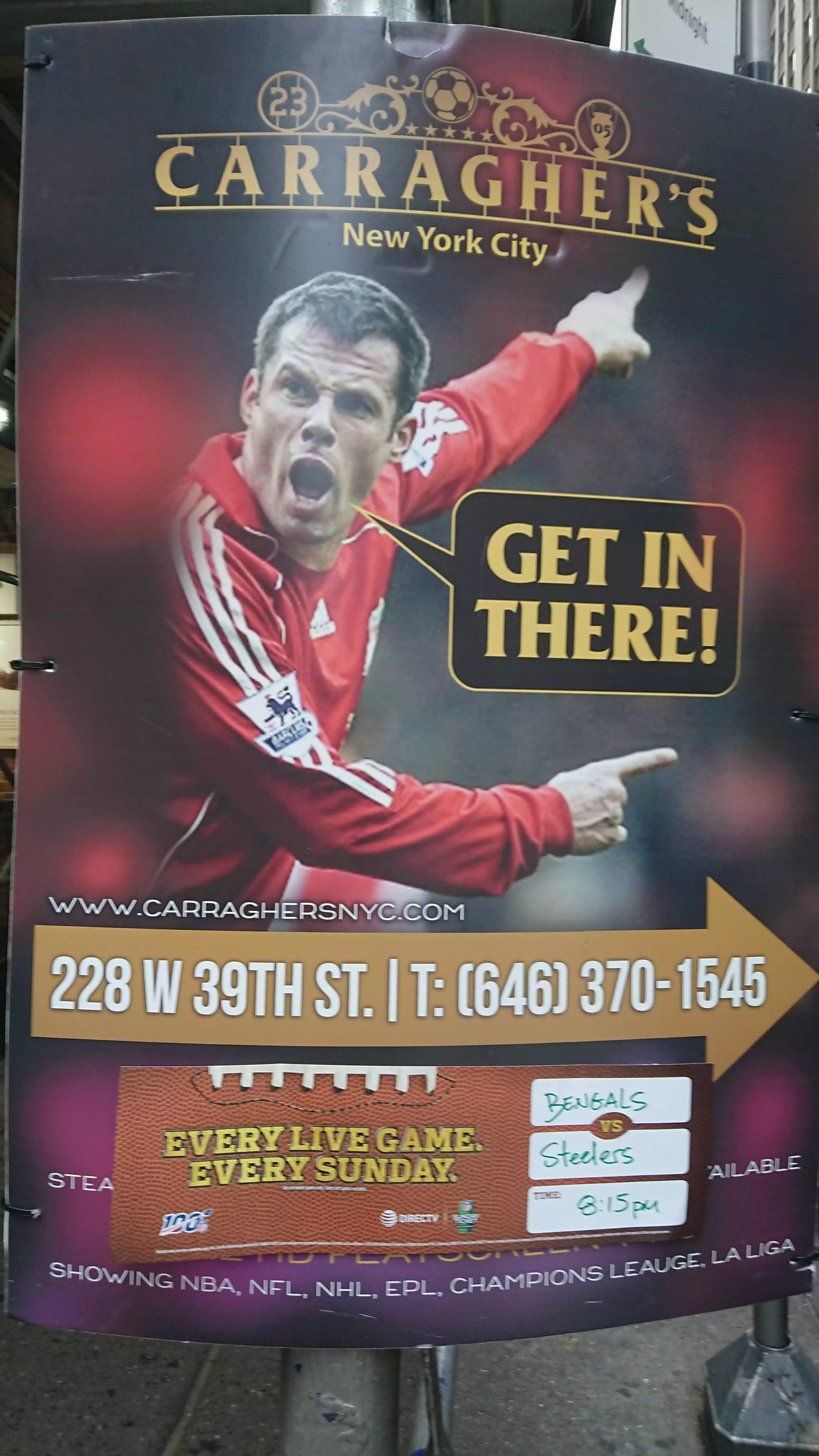 As a Liverpool fan this was a must visit whilst in New York , but even a non Liverpool fan would like it here. Well equipped bar, great staff, tasty food and at least 5 big screens showing American football, ice hockey, football and many more. A relaxed evening was had by us, felt comfortable and at ease, nice chat with staff and the chance to have a picture taken with memorabilia. If you’re a sports fan and in New York pay carraghers a visit - you won’t be disappointed.