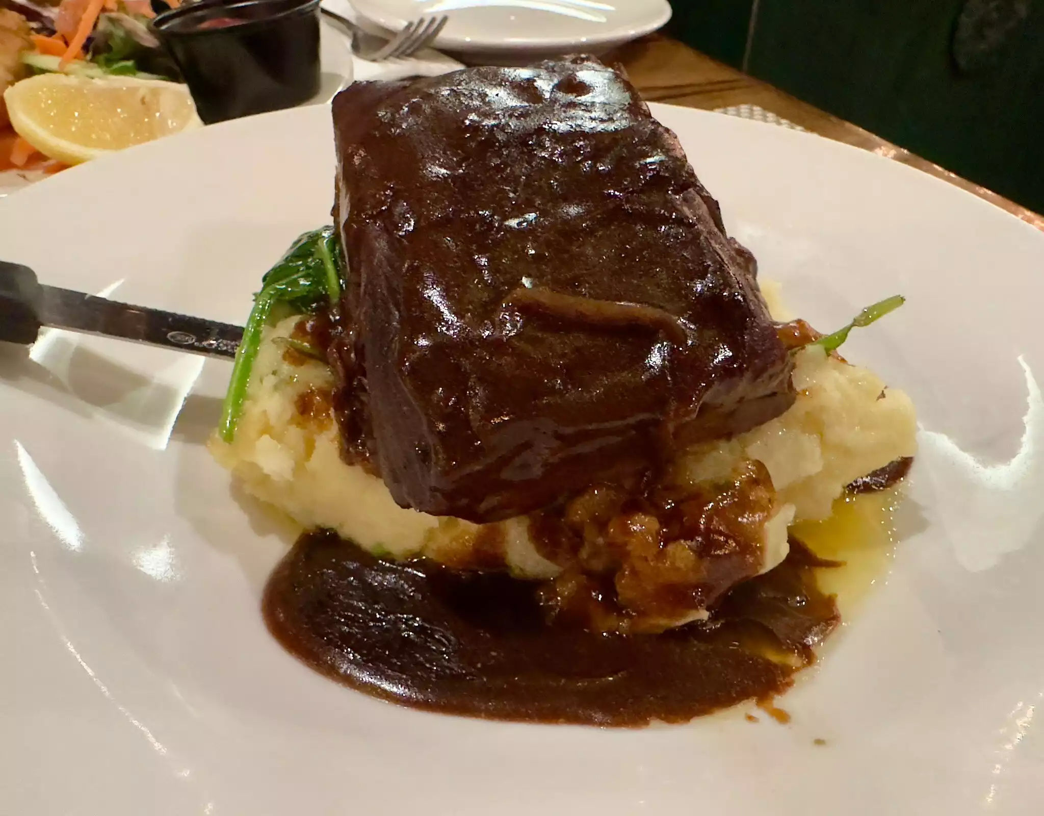 Just finished a great lunch here. Server Aaron was perfect. Food also on the money. Lamb lollipops delicious and generous. Had lamb gyro special lots of moist tender lamb chunks tasted great. The potato croquettes with black pudding inside outstanding. My guest had fish sandwich special and he enjoyed it. Is it wrong to have an Irish coffee in an English bar? No. It was great also with fresh cream. Yummy.