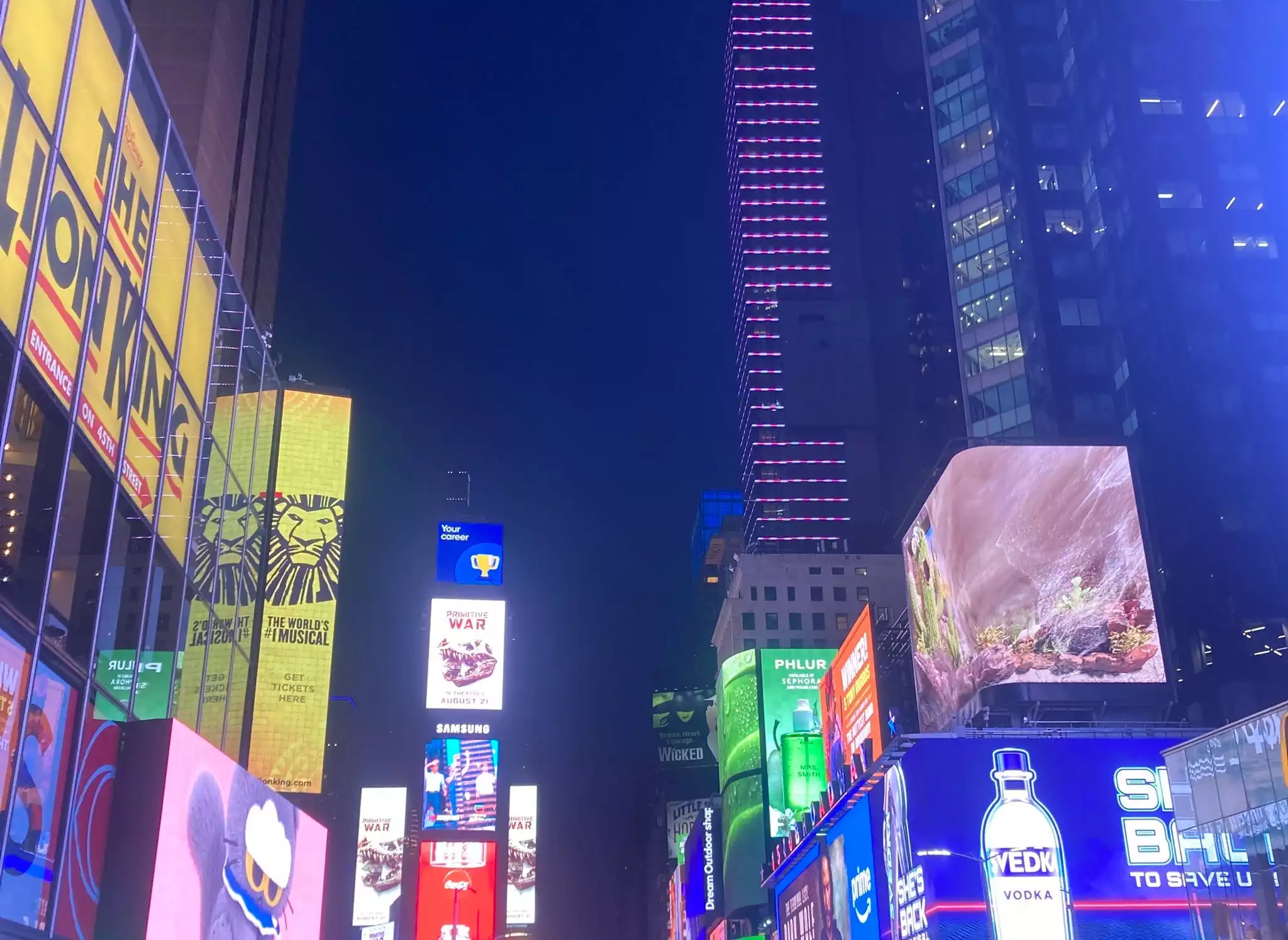 Good Pepperoni & sausage sausage pizza. The sausage was kind of bland, but the pepperoni was great. The chicken noodle soup was just like mom makes! Delicious. The staff was help and friendly. It’s close to Times Square & Theaters. It also has tables to sit at, unlike many of the other local pizza places.