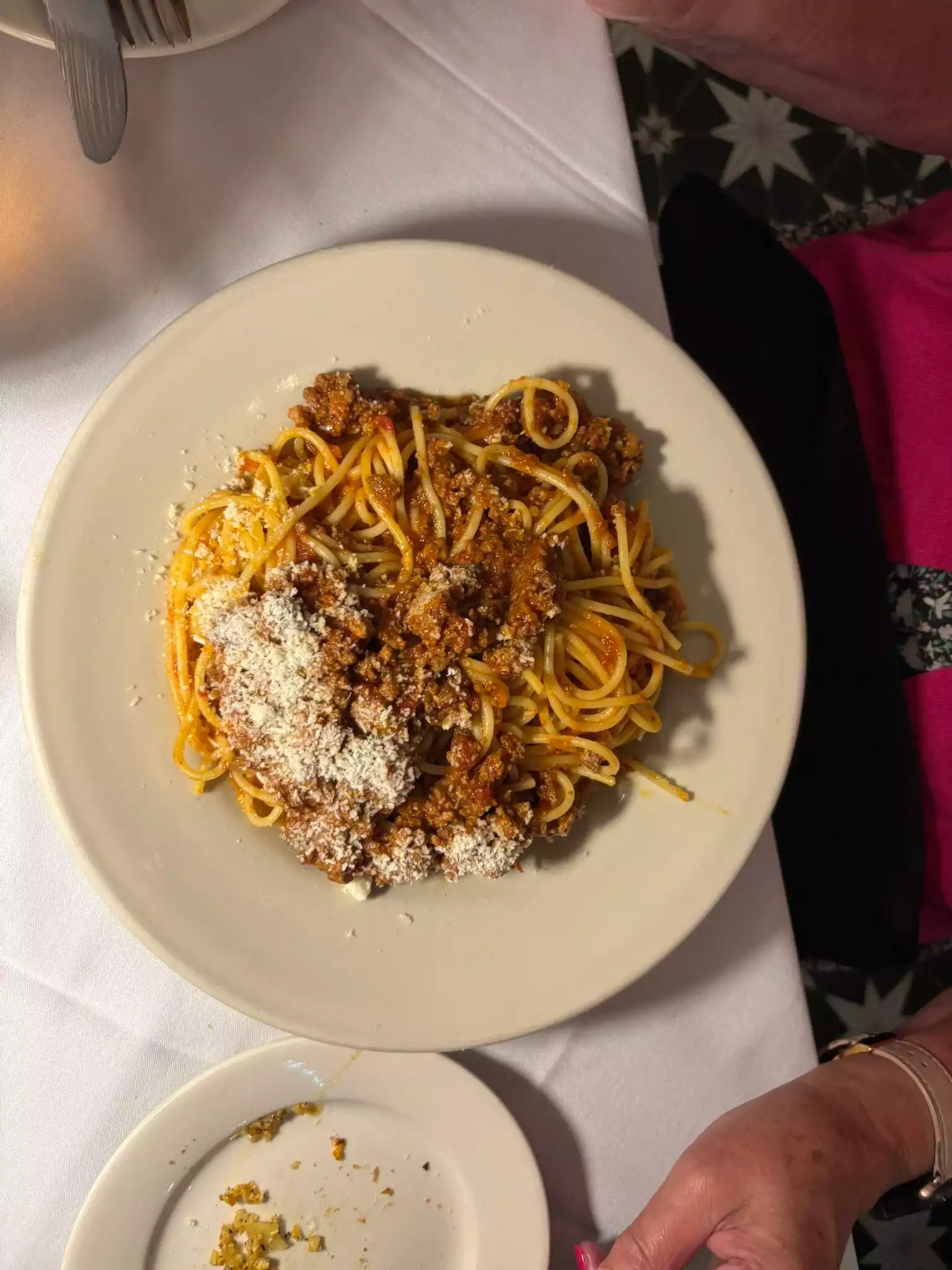 Food was great. Bread fresh. Calamari tender. Bolognese and meatballs were delicious as was eggplant parmesan. Best was veal parm. We’ll all be back.
