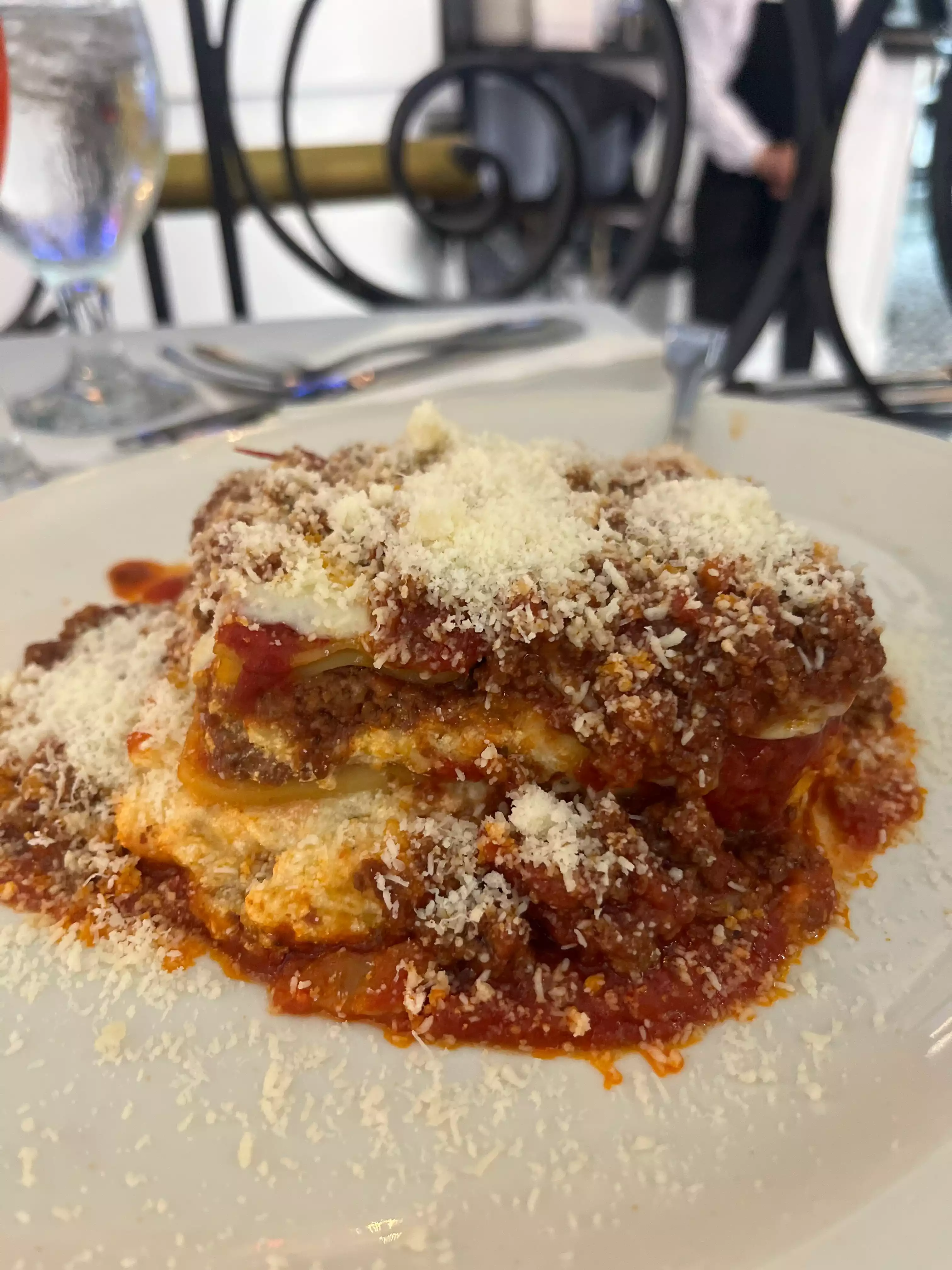 Our meal was incredible! I had the four cheese spinach ravioli which was a generous portion, not the five large-ish ravioli you get at some places. My friend had the eggplant parmigiana and said it was the best she’d ever had. (We’re both from Italian families!) Our server was wonderful, attentive and knowledgeable. Loved our meal “inside” by the open terrace. Definitely recommend!