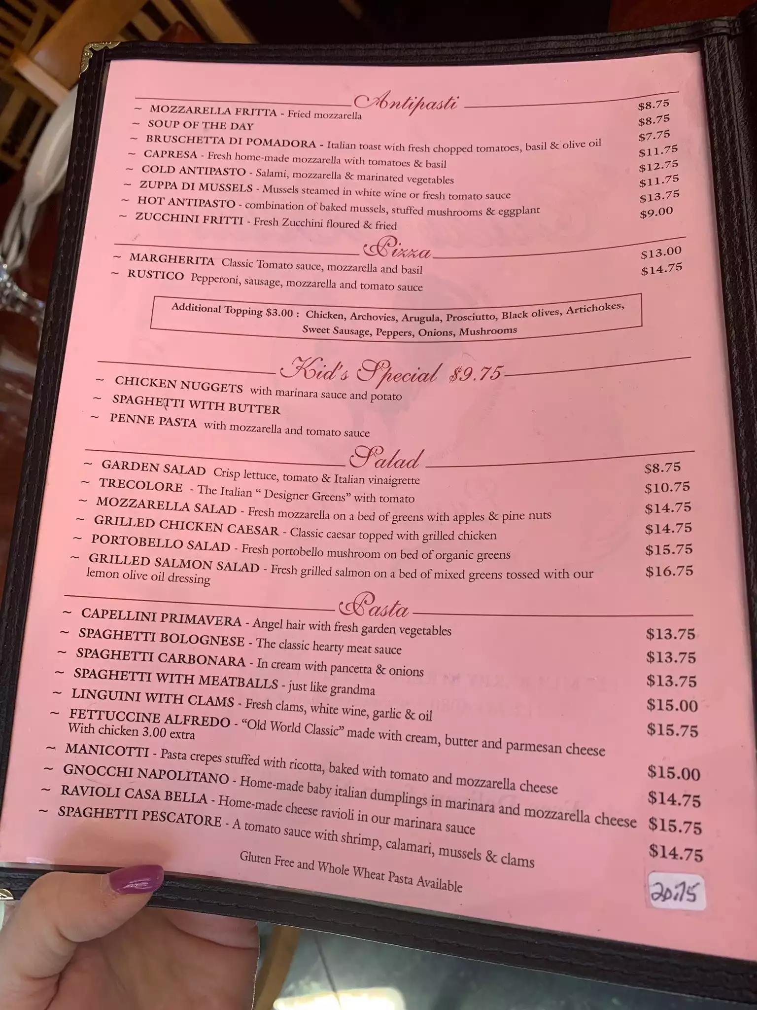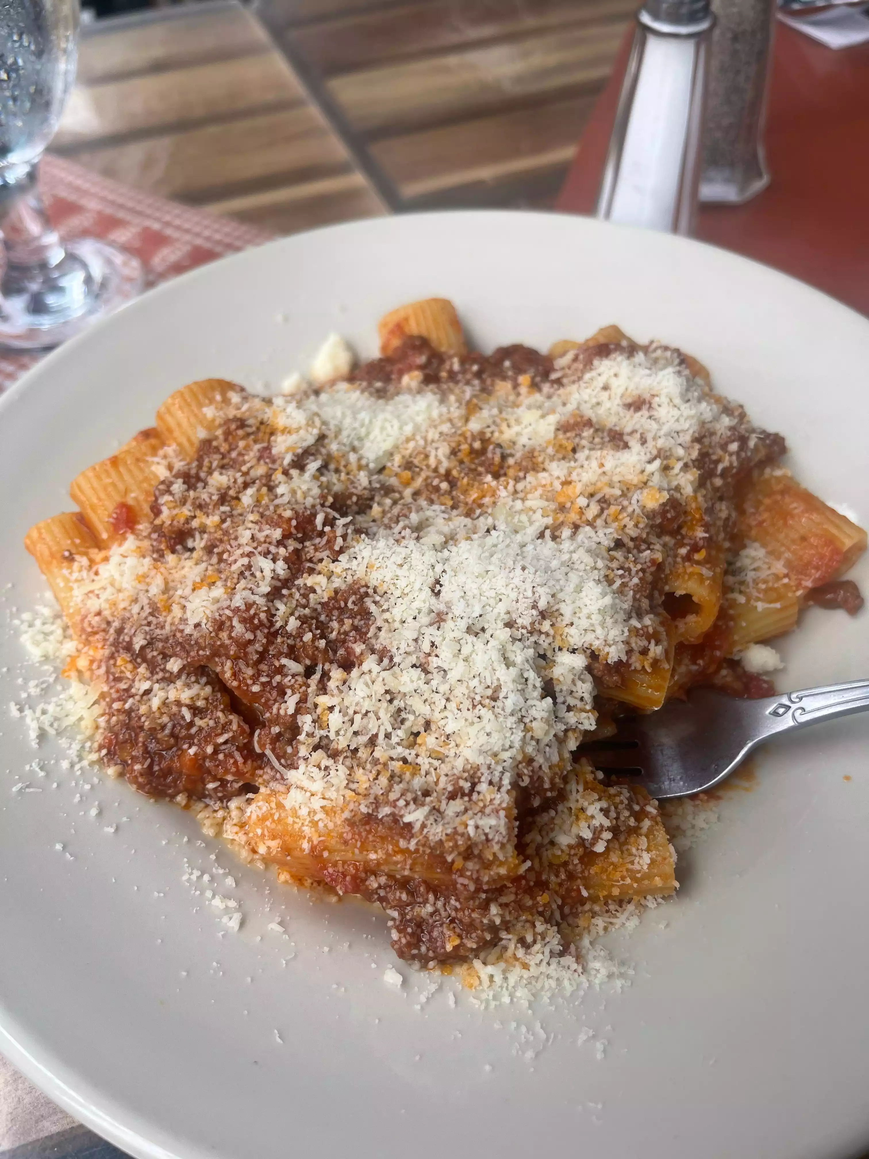 Pasta was made perfectly, true Italian personalities. Loved the guy outside and our waiter. Sitting here as I’m writing this. Cute inside, clean bathrooms. Nice to people watch and eat at the same time.