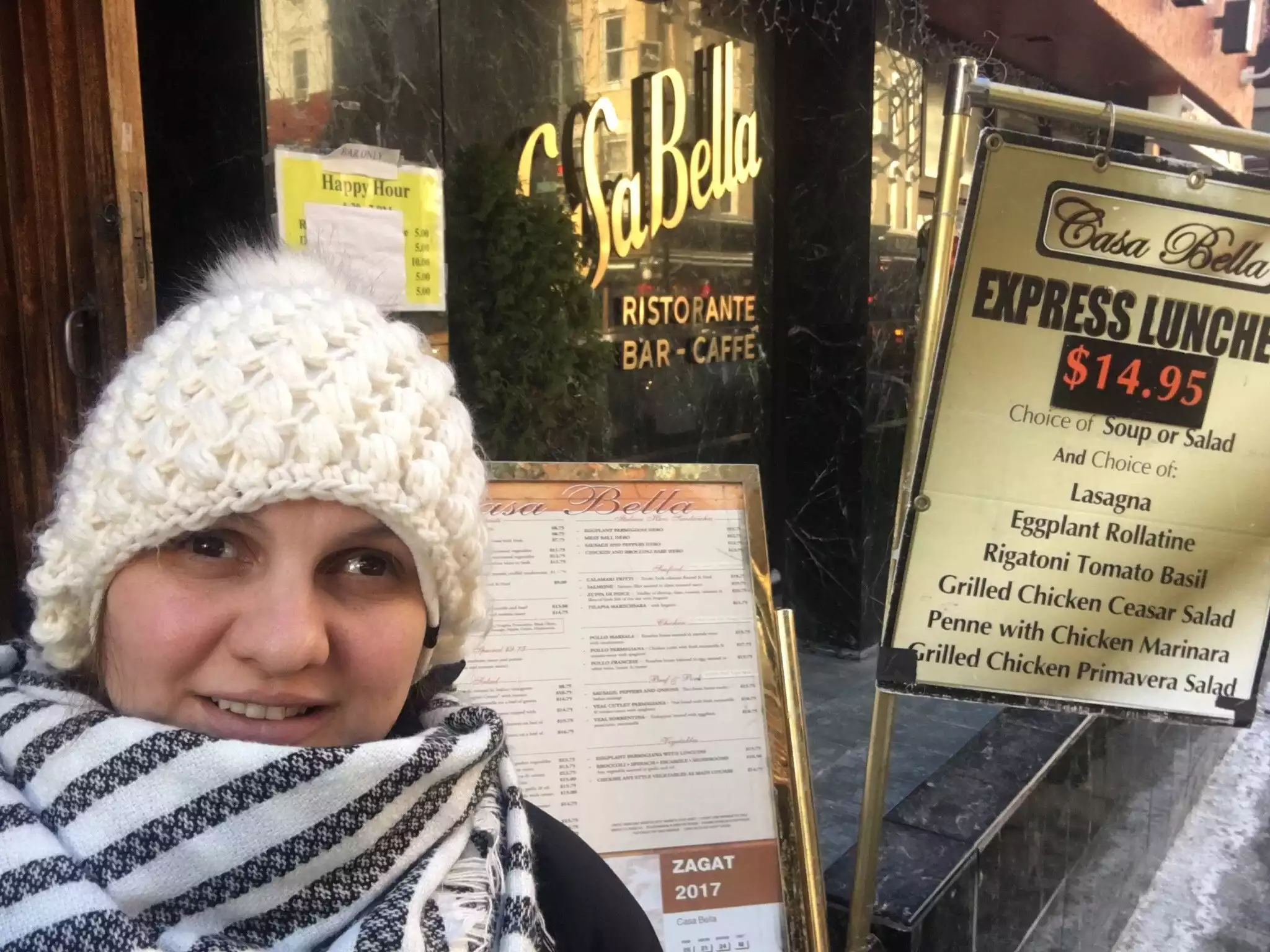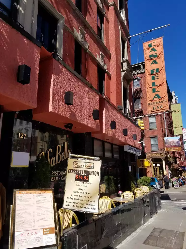We strolled through New York and landed at Casa Bella around noon. We took a seat outside and suddenly the singing innkeeper amused us. So he encouraged people A to stop by his place and B the landlord amused us great. And yes, the food was very good. Thank you again.