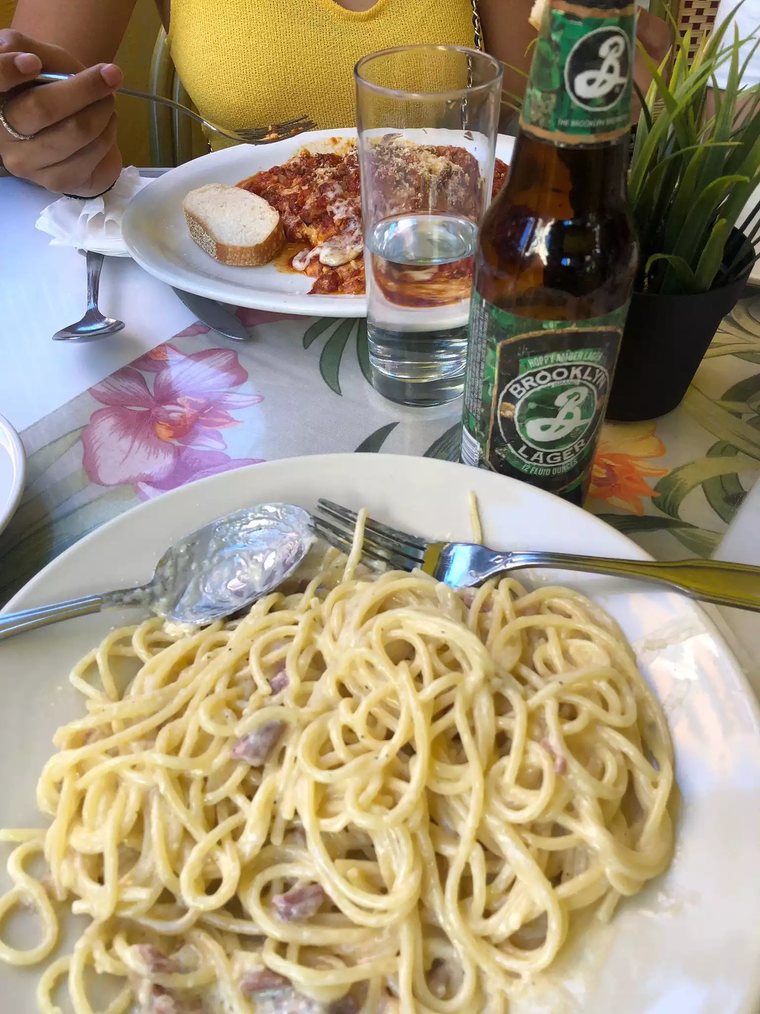 In the middle of Little Italy, we came into this one instead of others because it was the only one with “menu”. Staff was great from start till end, someone took care at all times of our table (Water, orders...). Food was normal for prize and size (Dish Carbonara 14$ and the menu 15$), drinks were quite expensive, 8$ for a Brooklyn Lager. The restaurant was good located, clean, etc.