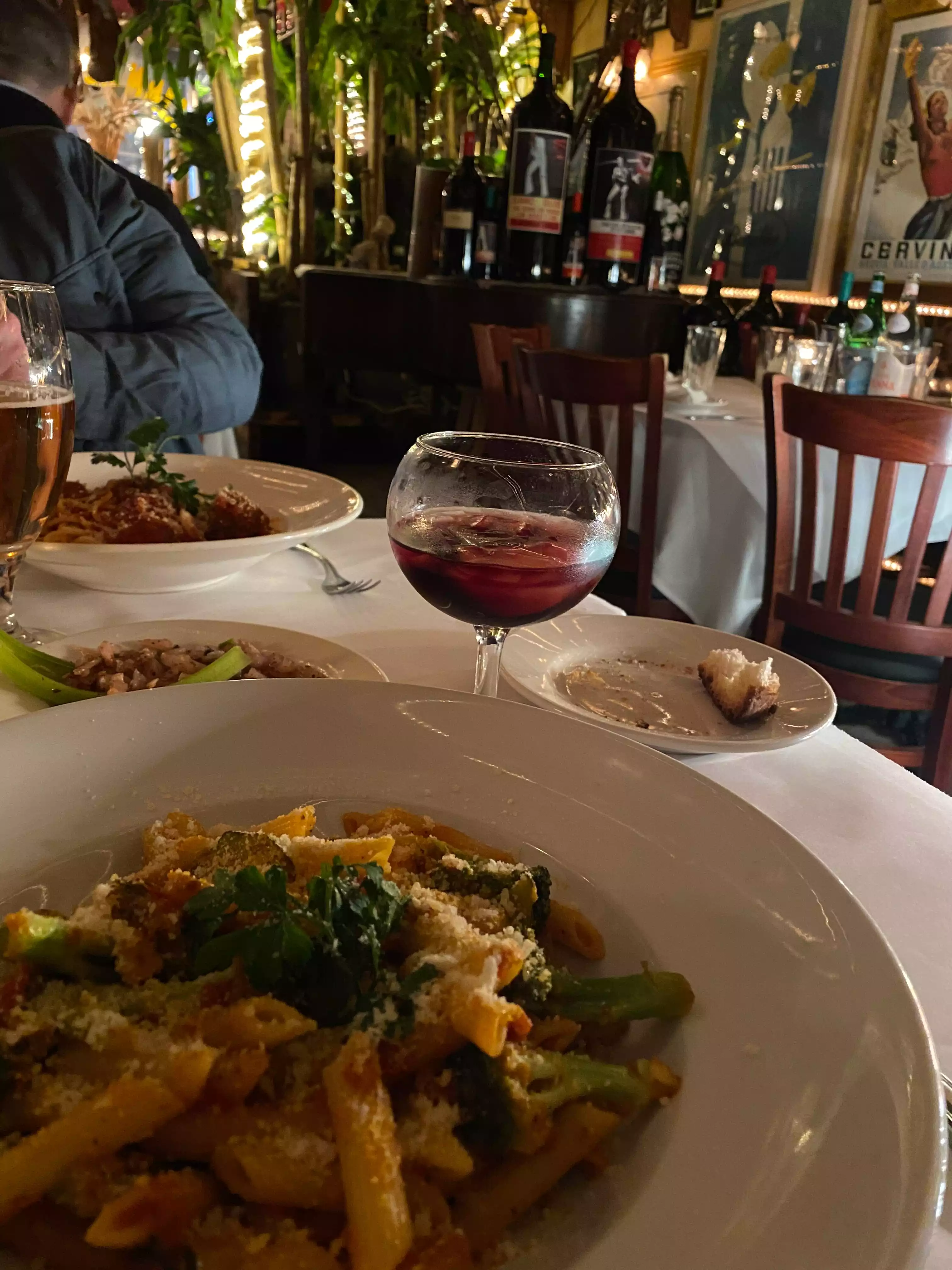 We had a delicious late afternoon dinner after walking our feet off in NYC. So glad to sit down! Love the Elvis atmosphere and the Elvis music/video playing. The owner apparently was an Elvis impersonator in another life and there is memorabilia all over the small place. You won’t find anything like this most places! My husband had veal Parm and I had spaghetti and meatballs. The bread and dipping sauce was outstanding as was the Chianti. I recommend this small place for a unique experience even in NYC.
