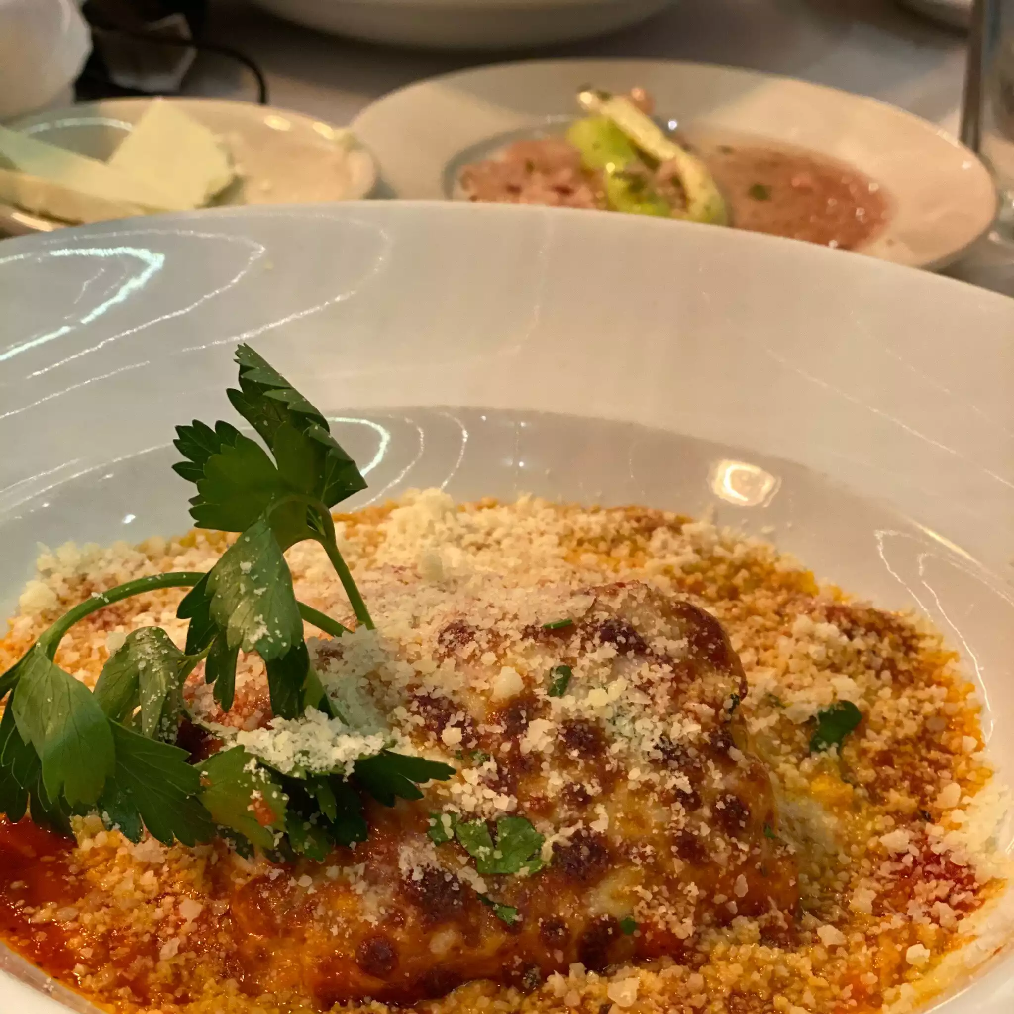Wife and I were walking and looking for a place to eat and a man at the traffic light recommended. Came back and ate there with my family 2 days later. Greeted warmly and owner/ manager was helpful— every we ordered he said was his favorite 😄. We had 2 different gnocchi dishes, a spaghetti dish and chicken Parmesan. We all loved our meals and portions were large. Small place great ambiance. Reasonable prices. Great bread!