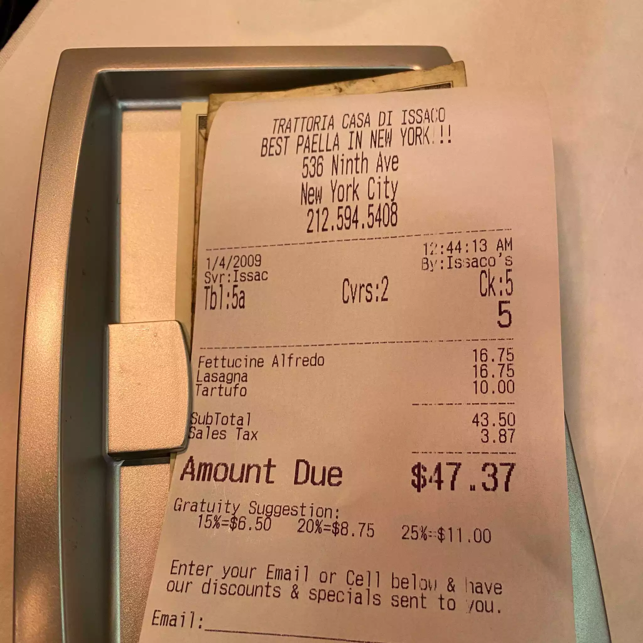 I wandered into Isaac's on my last night in NYC, a middle aged solo diner, and he treated me like a queen. Asked me what I'd really like and created a dish for me (delicious grilled halibut I think it was, on pasta with garlic and olive oil). And he put Elvis videos on for me to watch while I ate. I have photos to commemorate the evening. About to go to NYC again and I'll be sure to stop by.