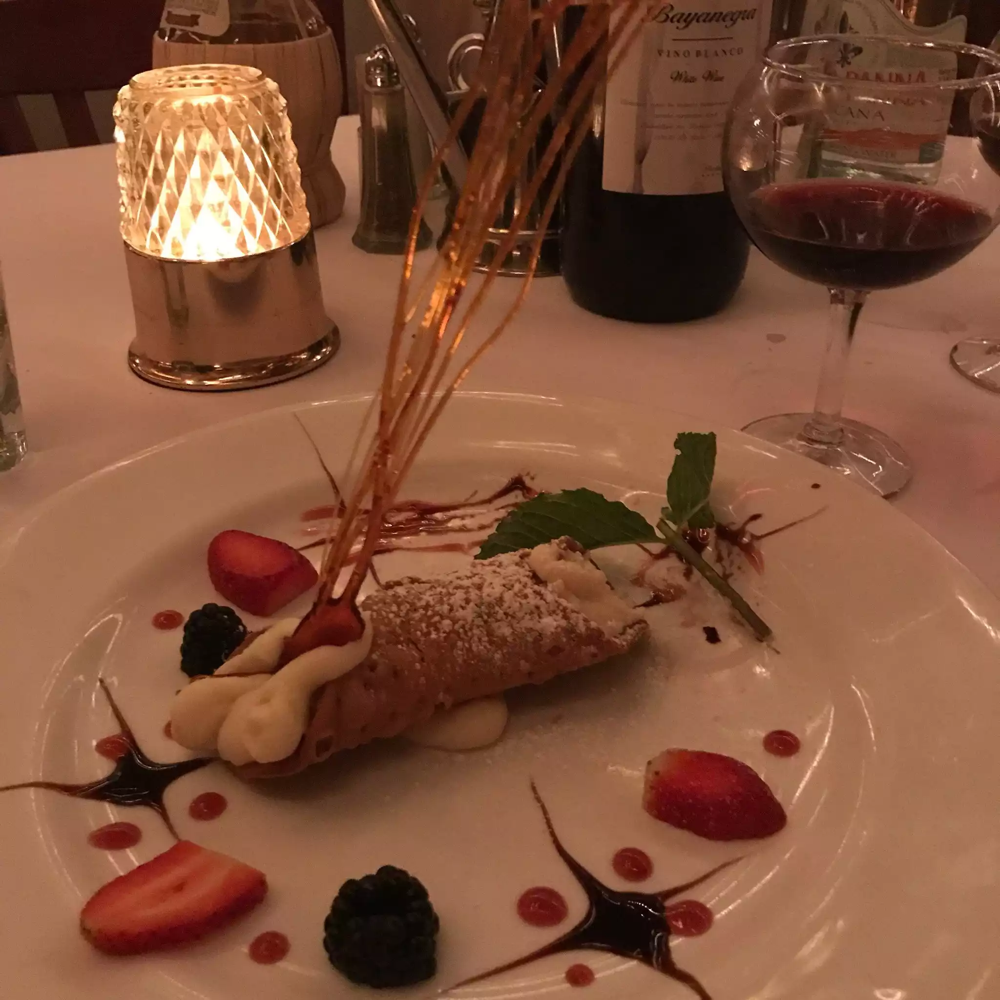 The ambience is amazing: romantic, cozy and warm. Service is excellent! Food is delicious. A lot of choices available. Would come back in a heartbeat.