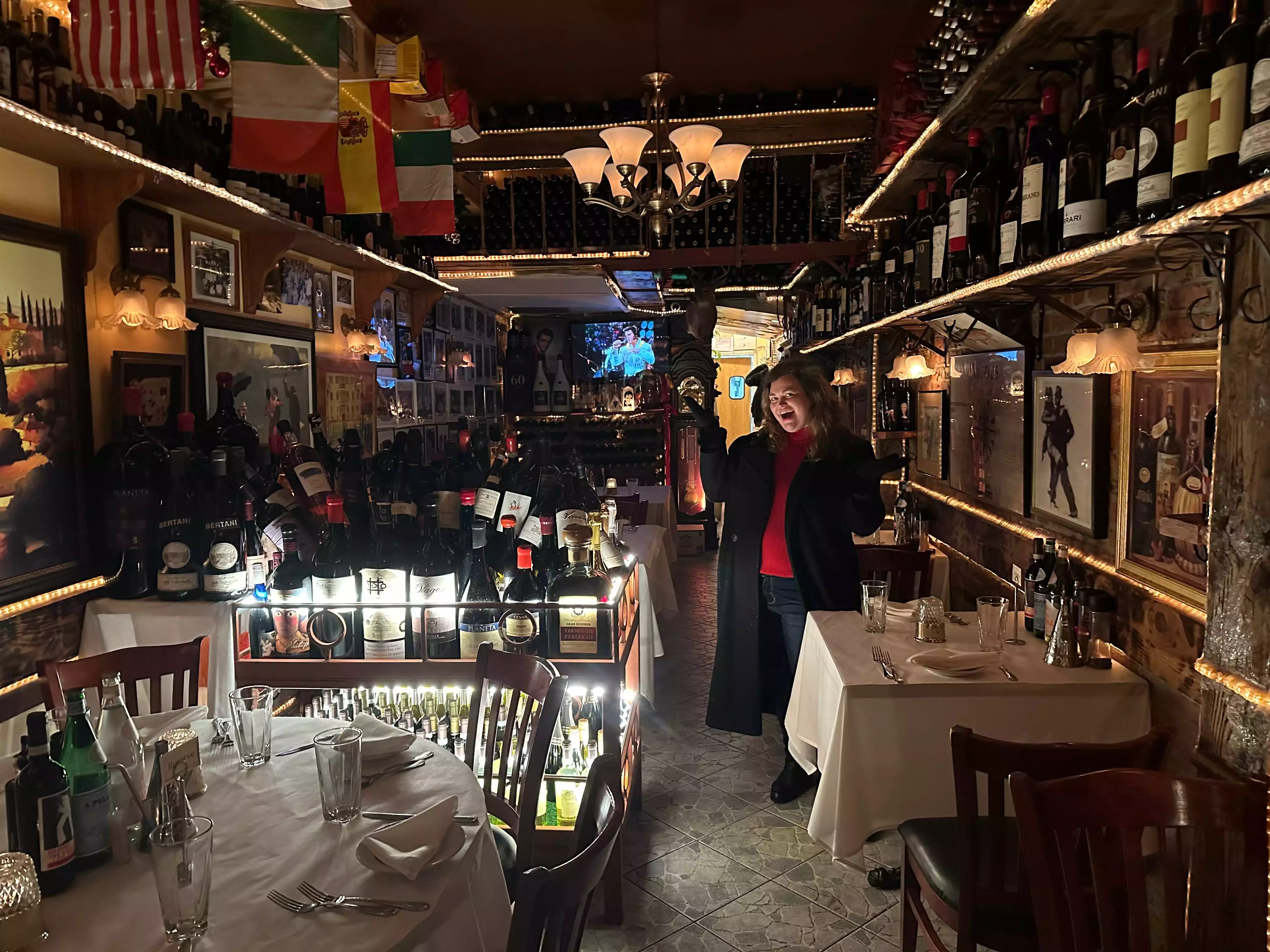 Visiting this place is an experience in its self as the owner Isacco is a character and his staff are not far behind. Don't be put off with the flat screen tv as you will see the old masters belting out tunes and this adds to the atmosphere of the place. The food is top class and if there is a group of you then get the house carafe as its cheaper that the wine list selection and probably just as good. We had a fantastic time here in the big Apple.