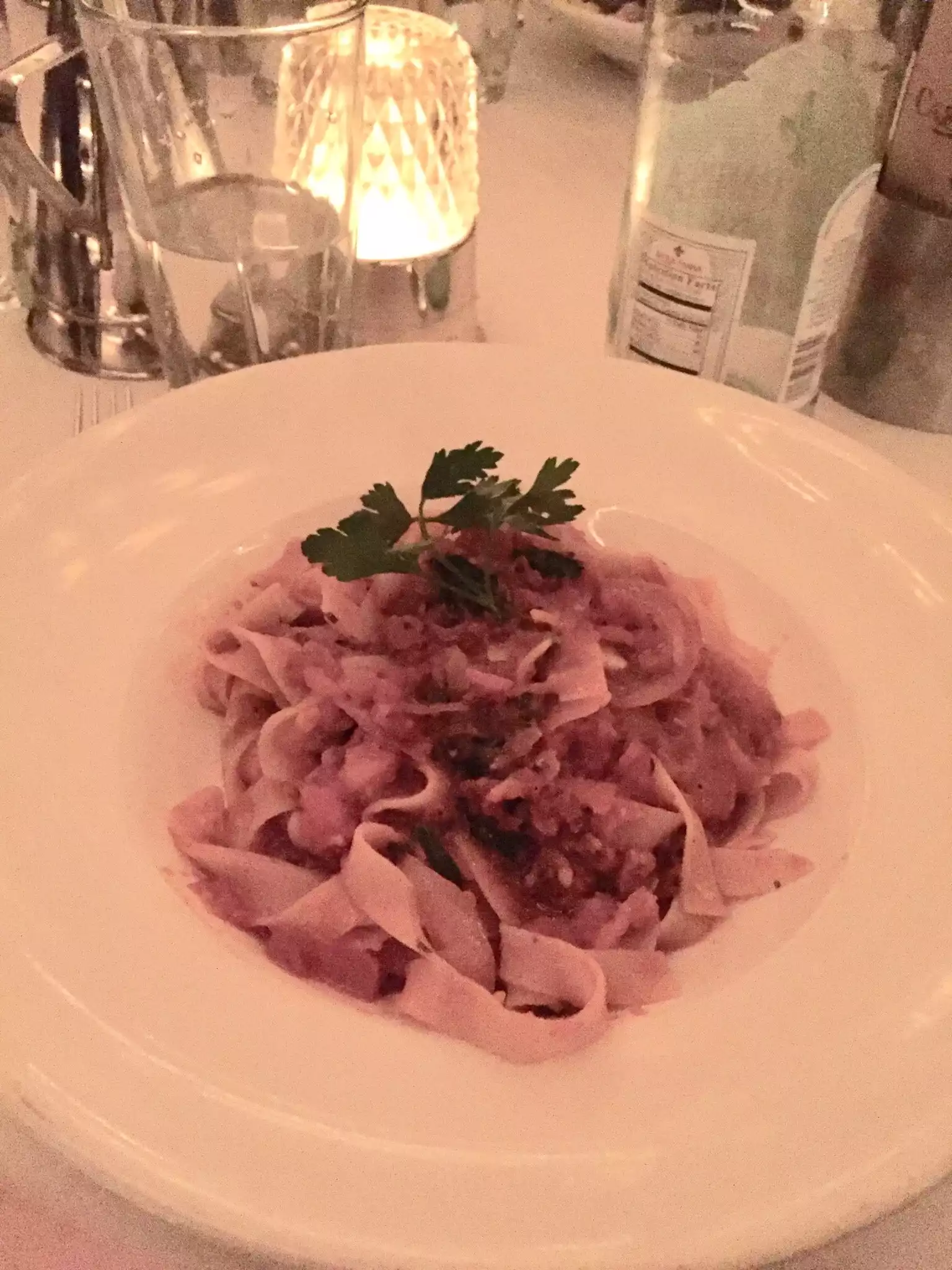 Food was fantastic, pasta and mussels was delicous and white homewine perfect! Cozy, romantic, italiano atmosphere.