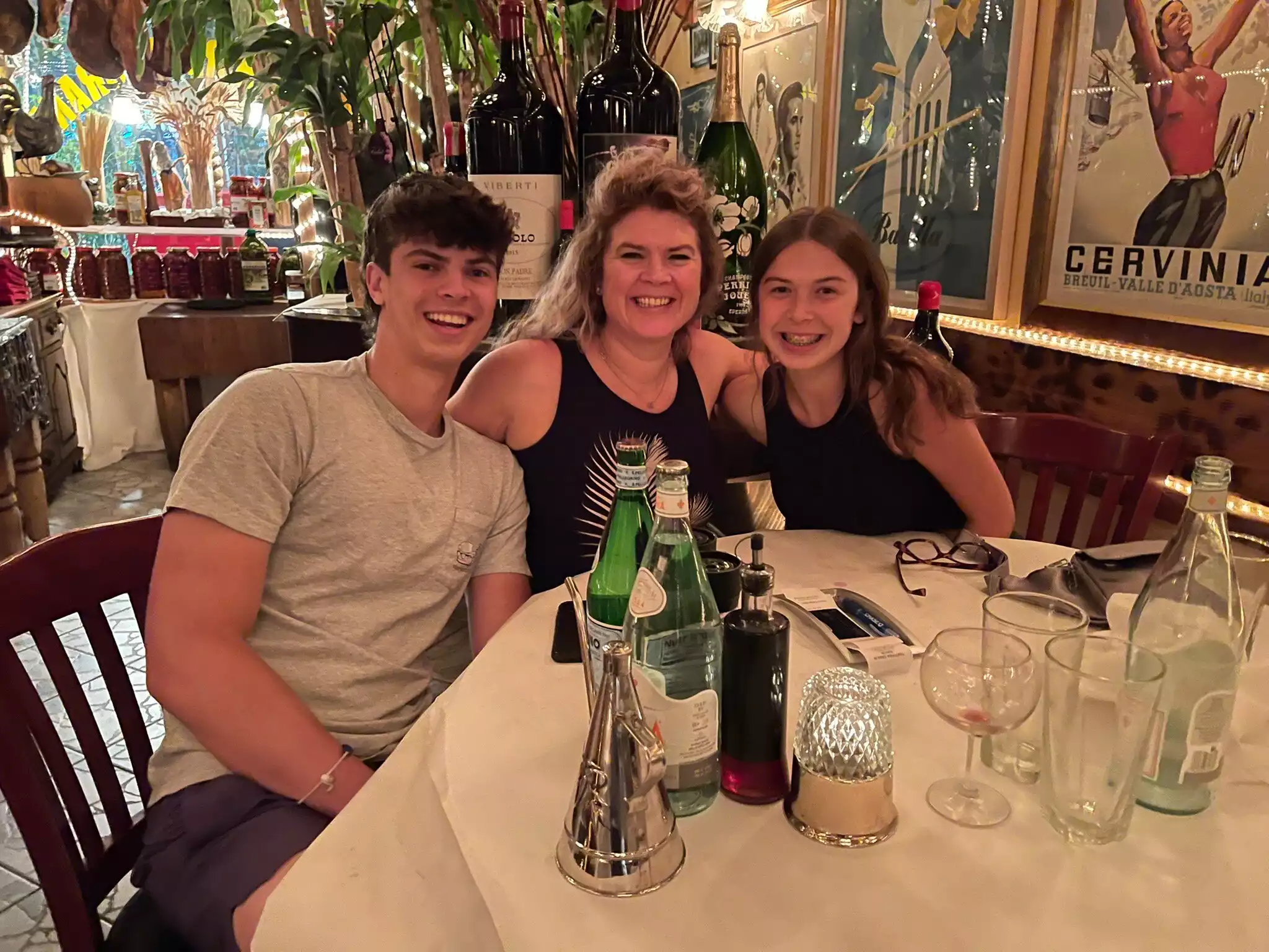 We ate there with friends. We were looking for a cozy place and we were attracted by the decor. Once there we quickly realize that the boss, former lookalike of Elvis, is unbearable! We ask for sparkling water and he immediately brings 2 bottles of San oelligrino which he pours abundantly in the event in the glasses. Same toppmo with the beers peroni. Each bottle will be charged $15. Total: $75 in beer and water. Pasta was passable Desserts, frozen, will be charged $20 each Very salty note Atmosphere dinner bad show from the boss To flee Scam!!!