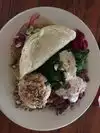 Delicious, home-made, macrobiotic food. The tortillas were sublime. The soup and veggies also very tasty. The food is all well-seasoned but not overpowering. I enjoyed the coconut chia pudding for desert.