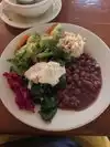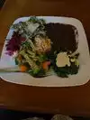 We are a vegetarian couple who only wanted a light lunch. The only option was to have just the soup and salad as we couldn't face the big plate as well. It was tasty, healthy and fresh, but would have benefitted from providing bread to accompany it. But that isn't the sort of thing they do.