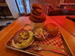 There were five in our group and we all liked this place so much that we just ate there every day while staying in a near by hotel. The onion rings are to die for and the coffee was fabulous! Best veggie burger weâve ever eaten. We also loved their pies and shakes. Highly recommend!
