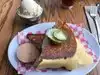 Nice atmosphere, all great from service to ambient music. The french toast is delicious and served in a generous portion. Nice coffee and orange juice, but the latter is a bit too sweet.