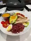 The Avocado Cobb salad is excellent. Fresh ingredients and well prepared. The chicken was grilled to perfection. Janell was great, very polite, attentive, and quick. The Cat Cora I0a is also a good beer.