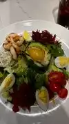 Grilled avocado Cobb salad with chicken was delicious. Husband had the cheeseburger with homemade chips. He said it was very good. The French Chardonnay for $12.00 was a very good wine.
