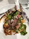I never write reviews. But when I want to spit out the first bite of a salad, I feel I have to. The dressing: It was all tart, no talent. Someone needs to go bad to chef school. I am not sure how many lemons gave their life’s juice for one plate of salad. The arugula: More bitter than a woman in a bad break up. The guy next to me sent his back, as well. I had no time or willingness to order another item. They took it off my bill, then they had the gall to still charge me $4.50 for a soda water. Bad taste all around.