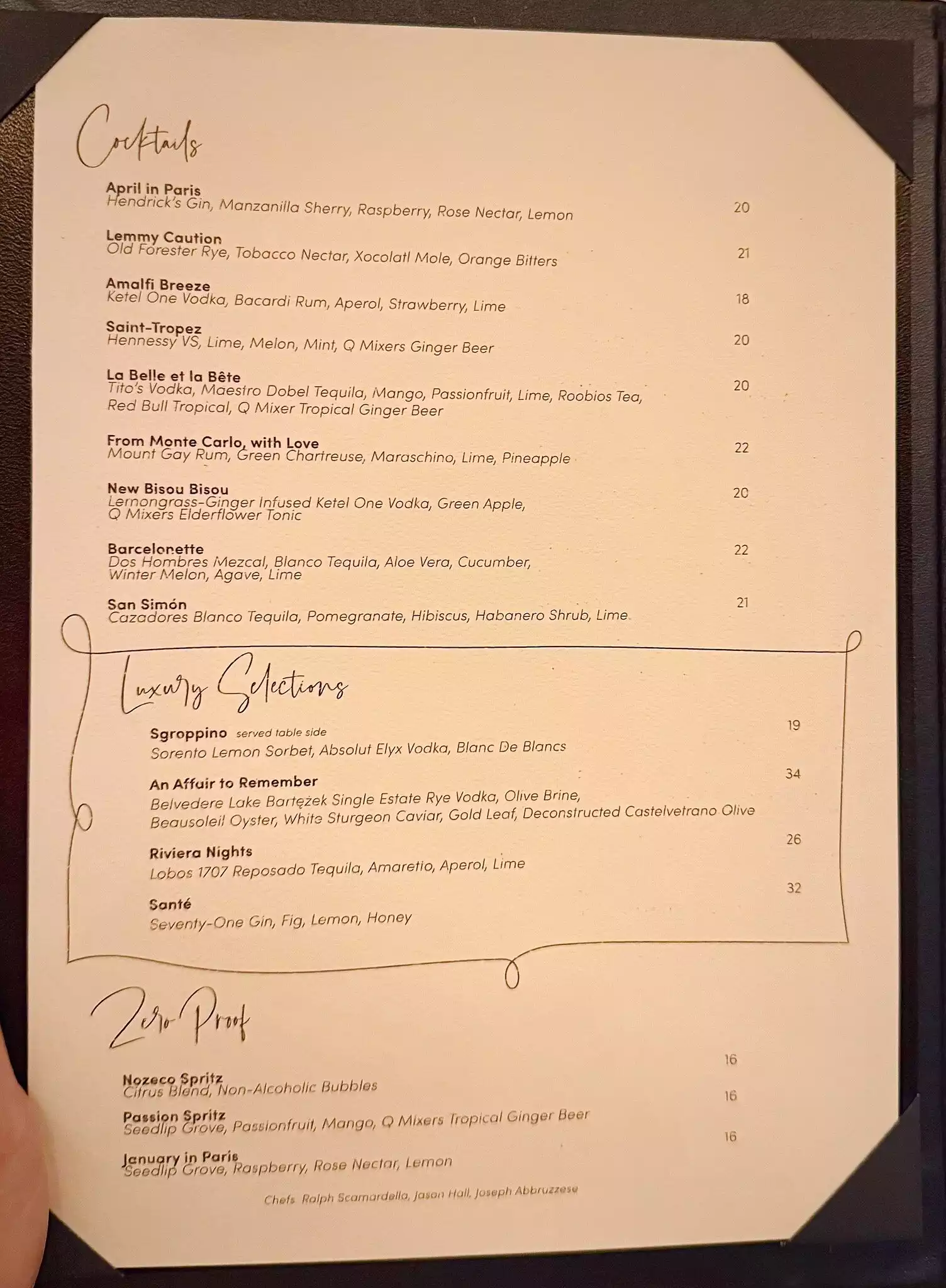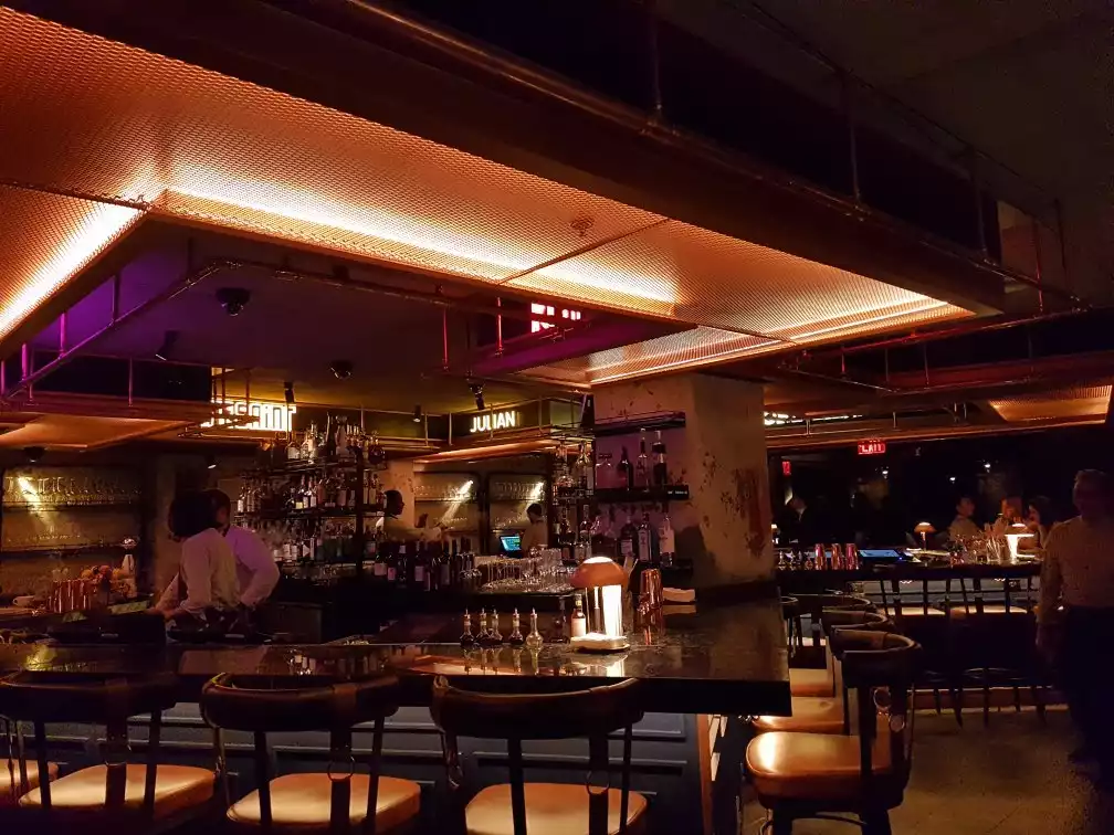 Visited for my birthday on a Monday night and it seem as though they didn’t have enough staff or people wasn’t working. The food was basic and average and the drinks were good. To be honest it’s a good spot for drinks. The ambiance and the decor is nice. It took over 20 minutes for someone to come over and take our order. We never got our waiter name. She was nice and pleasant but we had to give someone the bill when we were ready to pay. For the price and prestigious image they displayed I rather go to Le Bernadine or somewhere else.