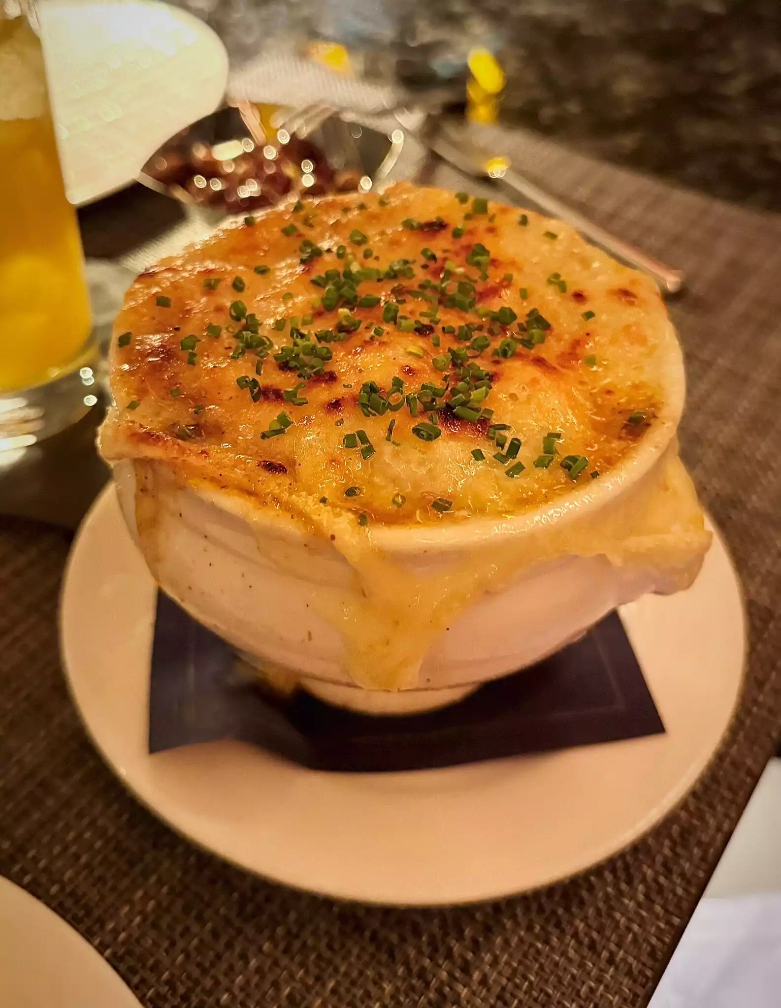 BAR REVIEW ONLY. Came here Saturday early evening for drinks—had reservations for the bar area so we got seated right away. I was a little disappointed the bar was not in the main dining room where I had seen online of their beautiful decor/architecture. Bar area was packed with lots of people coming in and out, also very dim lit here. Drinks were great—we enjoyed the Amalfi Breeze and La Belle et la Bete (both vodka based cocktails). Tried the Onion Soup du Pere Louis and Globe Artichoke, both good! Service was great and our bartender was pretty attentive.