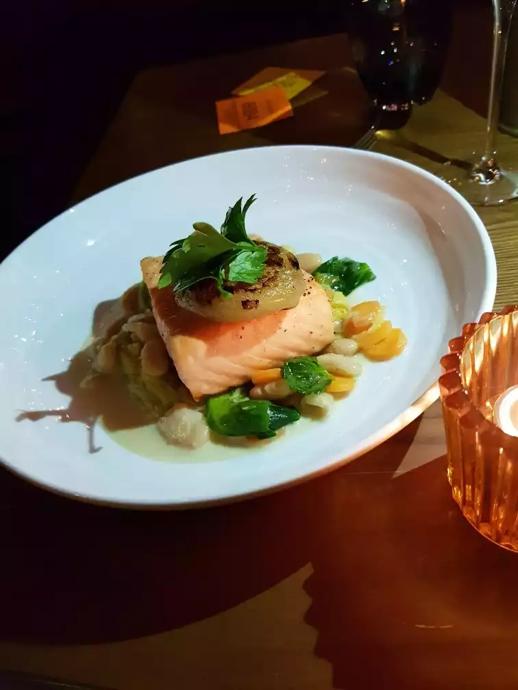 Great that we were given a table in the dining room even though we only had a bar reservation. The venue is fantastic! Cocktails were great. Appetizer was ok but when my friends were finished they took their plates (I know it is normal in the us) and seconds after they brought, not only theirs, but also my main dish (before i had finished my appetizer)… when I said I wanted to finish my appetizer they responded “we will see what we can do”. In the main (scallops with sunchokes) there was sand… (but taste was good) I would go back for drinks but not for dinner
