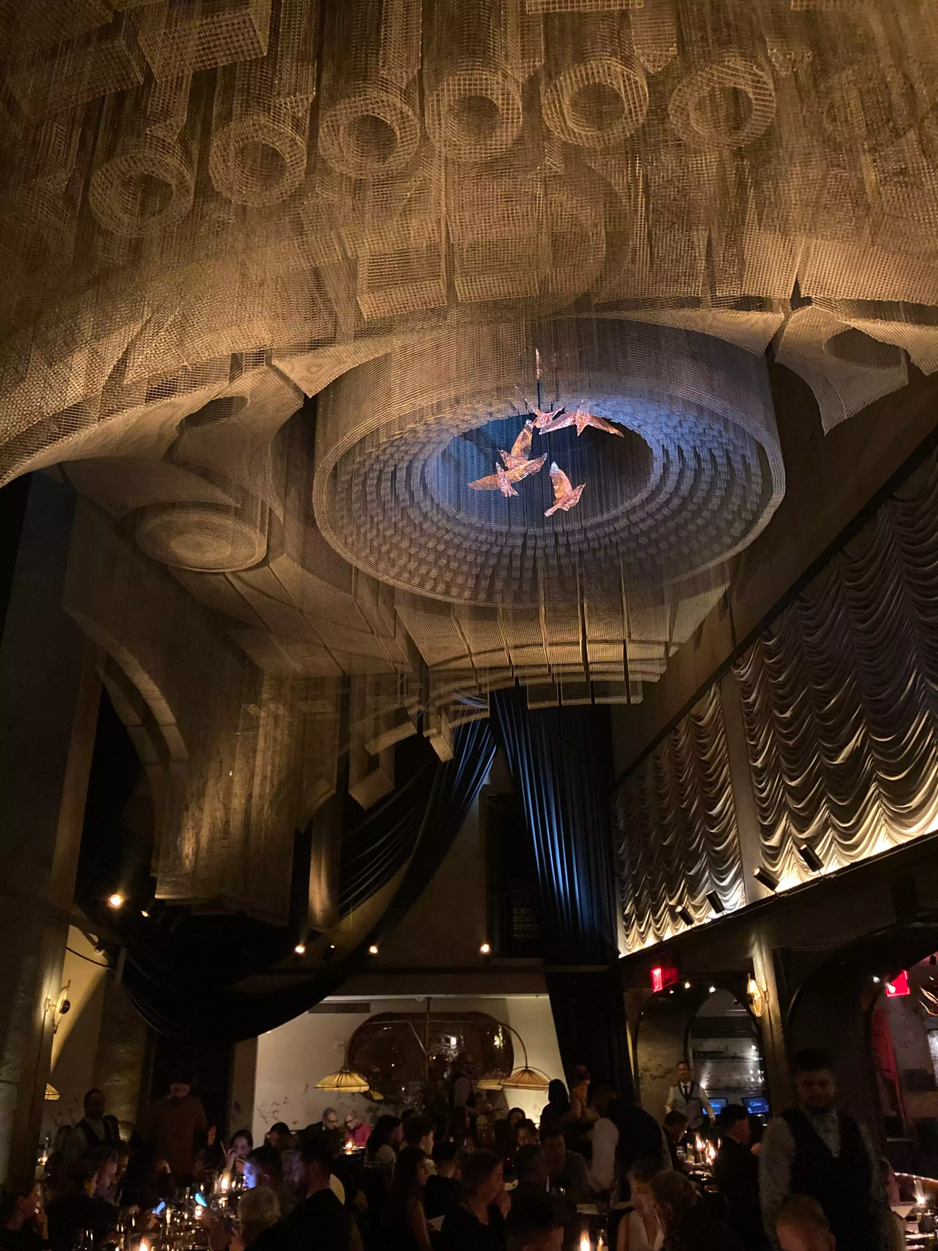 Booked this to celebrate a special Birthday while visiting New York from the UK with my grown up family. I wanted somewhere that felt different and the main dining room in Cathedrale didn't disappoint. The ceiling chain sculpture was very unusual and dramatic, but softened by silk drapes around the walls. We were seated in a booth around the edge which felt cosy. The restaurant felt more upmarket than I was expecting, which was perfect for the occasion. It was very busy, so I'd advise booking early - we booked a month or more before we travelled. Service was friendly, professional and efficient with a dedicated waitress and several others clearing away. There was a friendly sommelier who introduced himself, offering his services to advise on the wine - some of which was VERY expensive - the most expensive being $12,500! However, there were more reasonable prices too but we mostly had cocktails. We chose one cocktail - Sgroppino - where the bar waitress brought a trolley to our table and whisked the ingredients together (including lemon sorbet) in front of us, which was a nice bit of theatre and it was delicious. We were given breadsticks, olives and bread with a really delicious butter, while we waited for our meal. Our main course (entrees) was good. My husband had the entrecote steak, which was very expensive, but he enjoyed immensely. I had chicken chasseur, but felt it needed a little more rice to balance the amount of meat. My daughters shared a dessert which was probably wise, as both my husband and I couldn't finish our individual desserts. The waitress also presented me with a small Birthday cake and candle. We thoroughly enjoyed our experience at Cathedrale - the atmosphere, service and food, so would definitely recommend.