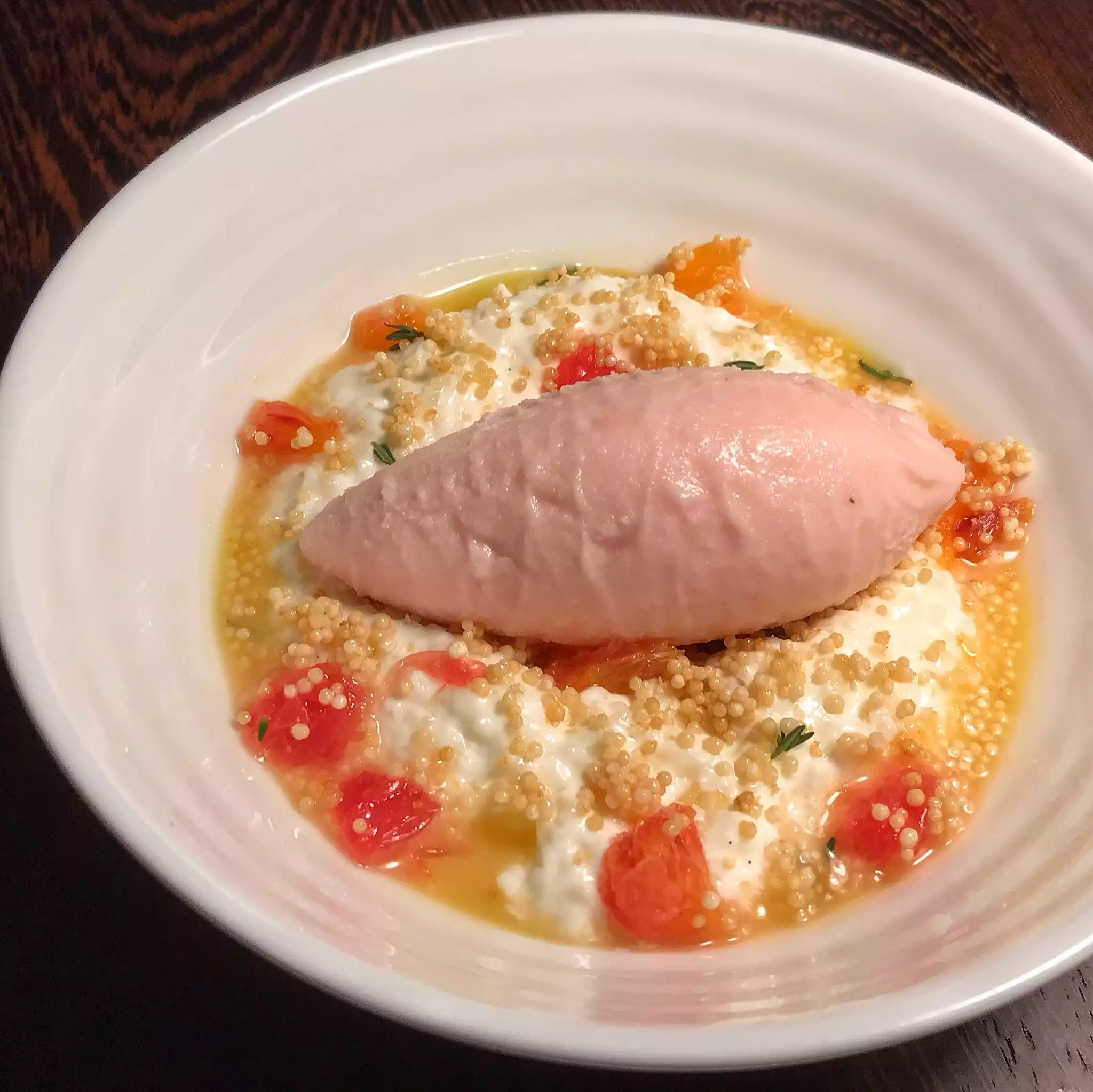 I found this restaurant on IG and I am so glad I did. I usually don't travel to the lower east side, especially to eat. This restaurant made the trip worthwhile. You walk down a long hallway and down the stairs and enter a different world. Everyone from the beginning of our evening to the end, were super nice and professional. We ordered a wonderful lemon, vodka, champagne and sorbet drink that was made at the table - it was delicious, but seriously the glass was so tiny - I think I had four sips. I never order chicken a restaurant, but the description on the menu looked so good, I had to try it. We also ordered the salmon and the hamachi - both equally delicious! If you get a chance, definitely visit this restaurant.