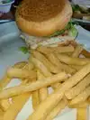 Try Salmon sandwich come with really delicious french fries. priced good I had been there several times in a 10 year spam and I always got what I expected for..