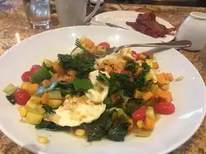 I would normally not submit reviews for hotel restaurants, however, I was pleasantly surprised with the selection (outside of the standard breakfast buffet) on the ala carte menu...ESPECIALLY the incredibly tasty ‘brisket skillet’. Incredible flavor and a plentiful portion of smoked brisket (I had it accompanied with two perfectly poached eggs) and fresh vegetable. With a unique ‘breakfast bar’ seating area...my visit (and appetite) was a pleasing satisfied.