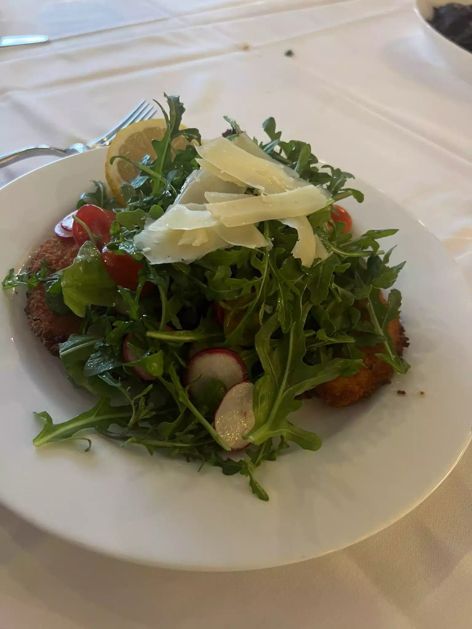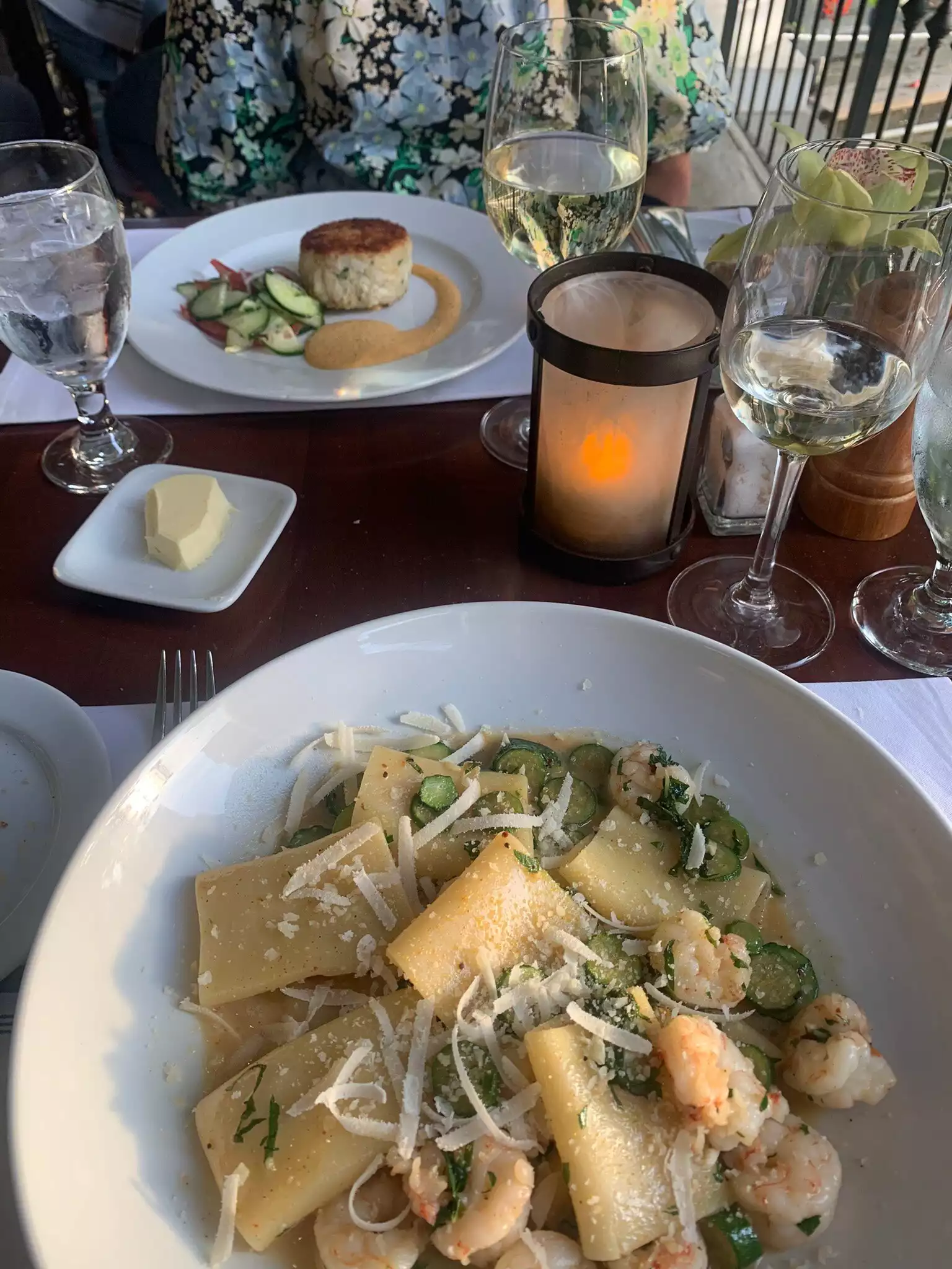 Daughter had the Lobster Spaghetti, I had the Roasted Chicken, and my wife had the Ricotta Ravioli. We also had a Caprese salad and calamari starters. Everything was fantastic - though the Caprese was a bit bland for my taste. Some more salt would've been nice. The views were great, we watched an independent movie/TV show being filmed on the water. That was fun :)