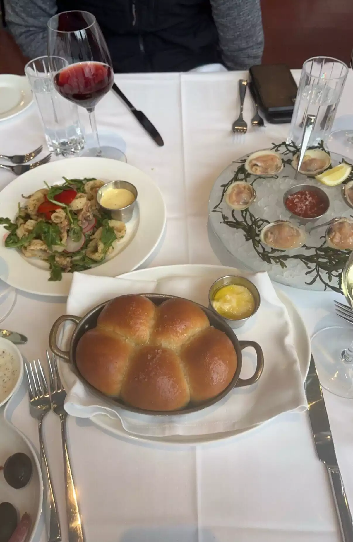 We had a bit of a problem getting a reservation but with a bit of perseverance, we finally managed it. Our group showed up early and so we sat at the bar for 30 min, which was delightful. Once seated we were seated by the window with a beautiful vew of the water and our servers (we were a group of 8) was excellent. They were friendly and so helpful. The cocktails, food and desserts were yummy and the only reason I didn't give it 5 stars was because the lobster spaghetti - while just delicious - was a hassle to eat. The lobster came IN the shell in and amonst the pasta, yet no tools/silverware were given to help extract the lobster meat. Gah!! I would say that the parker house rolls that we ordered for our appetizer were the BEST I've ever had. I'll definitely be back.