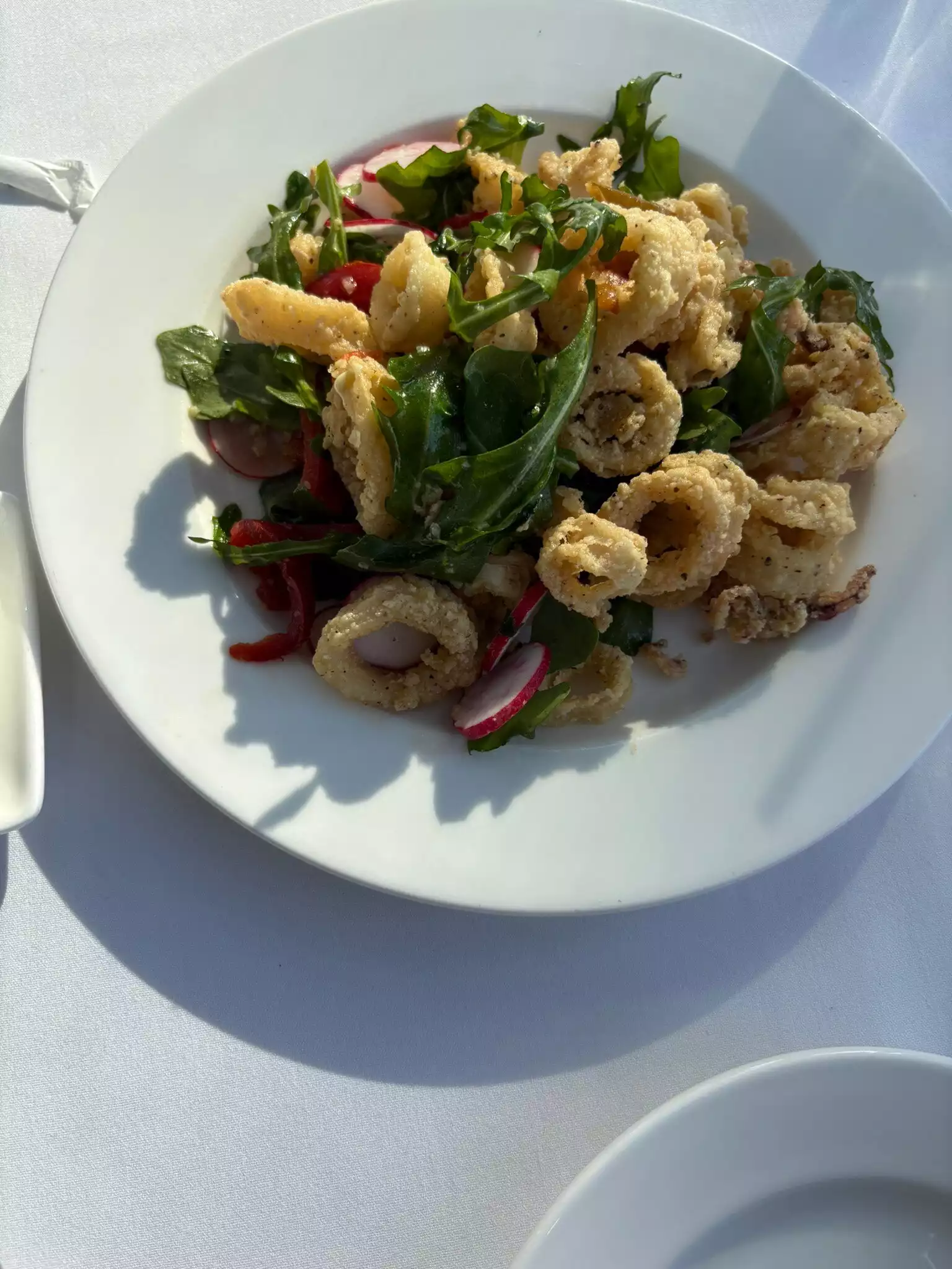 The calamaris were very nice, the salmon perfectly cooked but the burger in the kids menu was a bit basic. Great view and very nice service