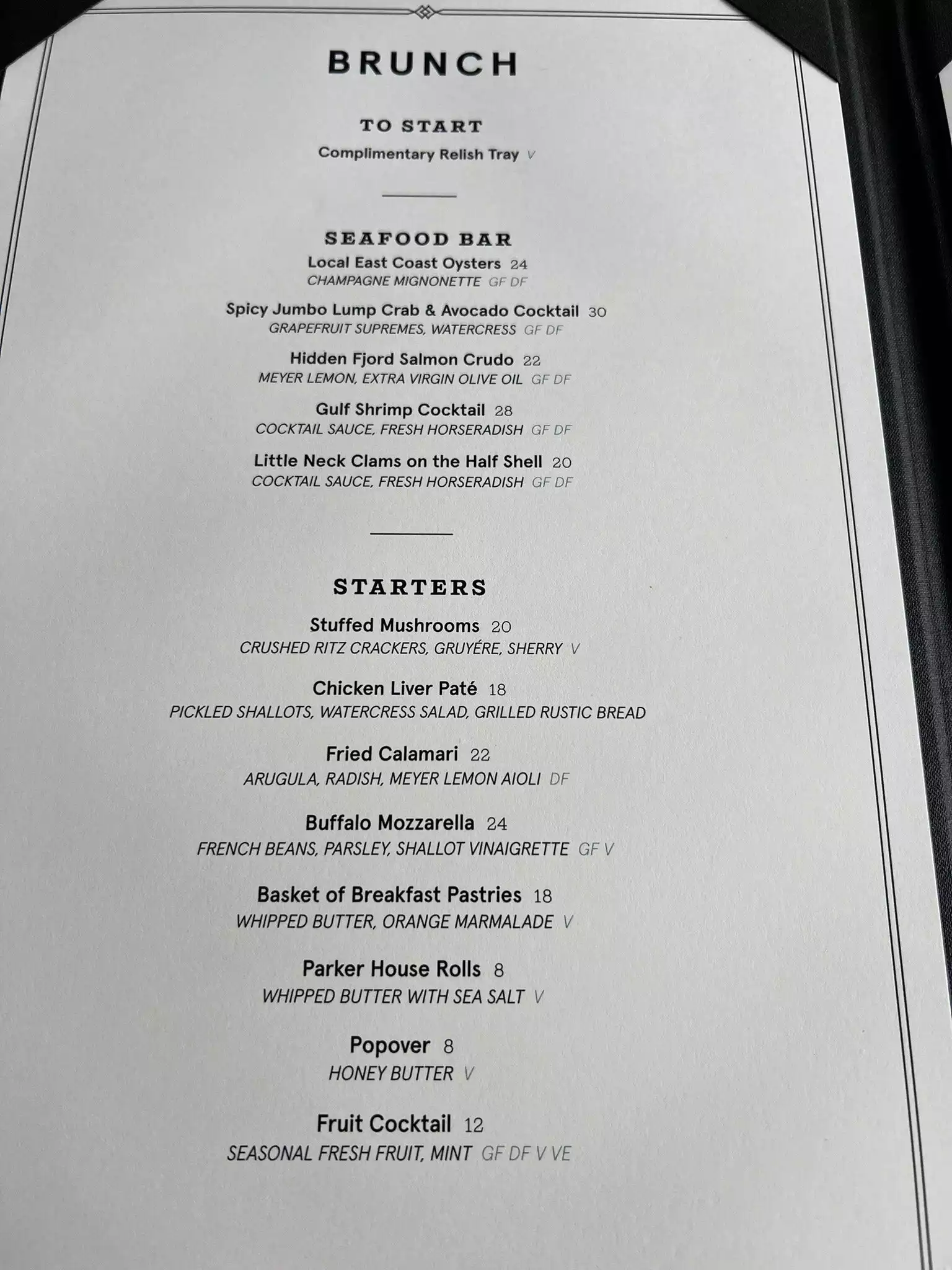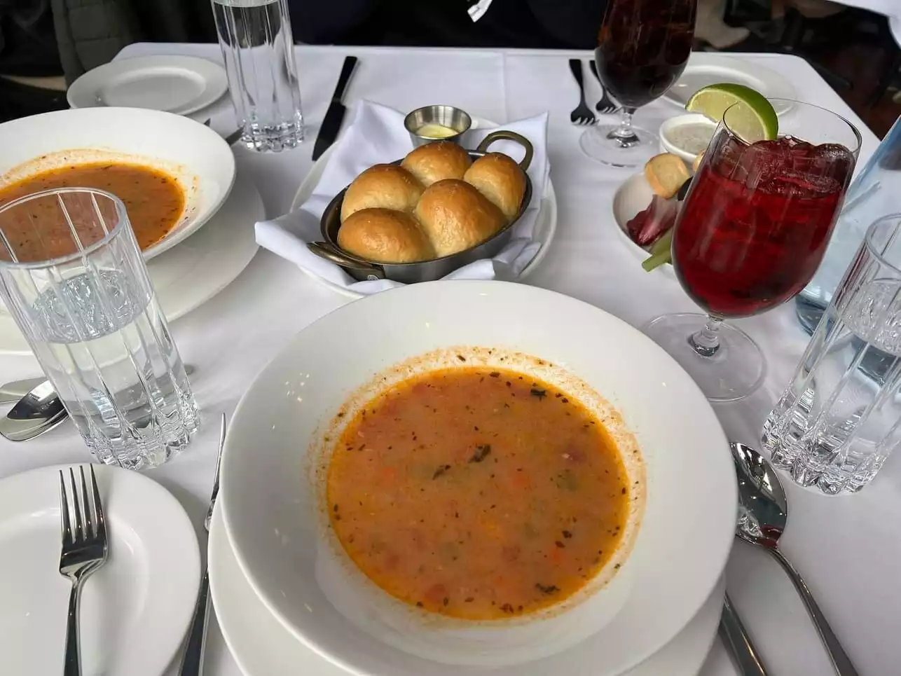 A super experience. Lovely food, attentive and cheerful service, outside views in city elegance. Worth every dime of the five stars check! Iconic.