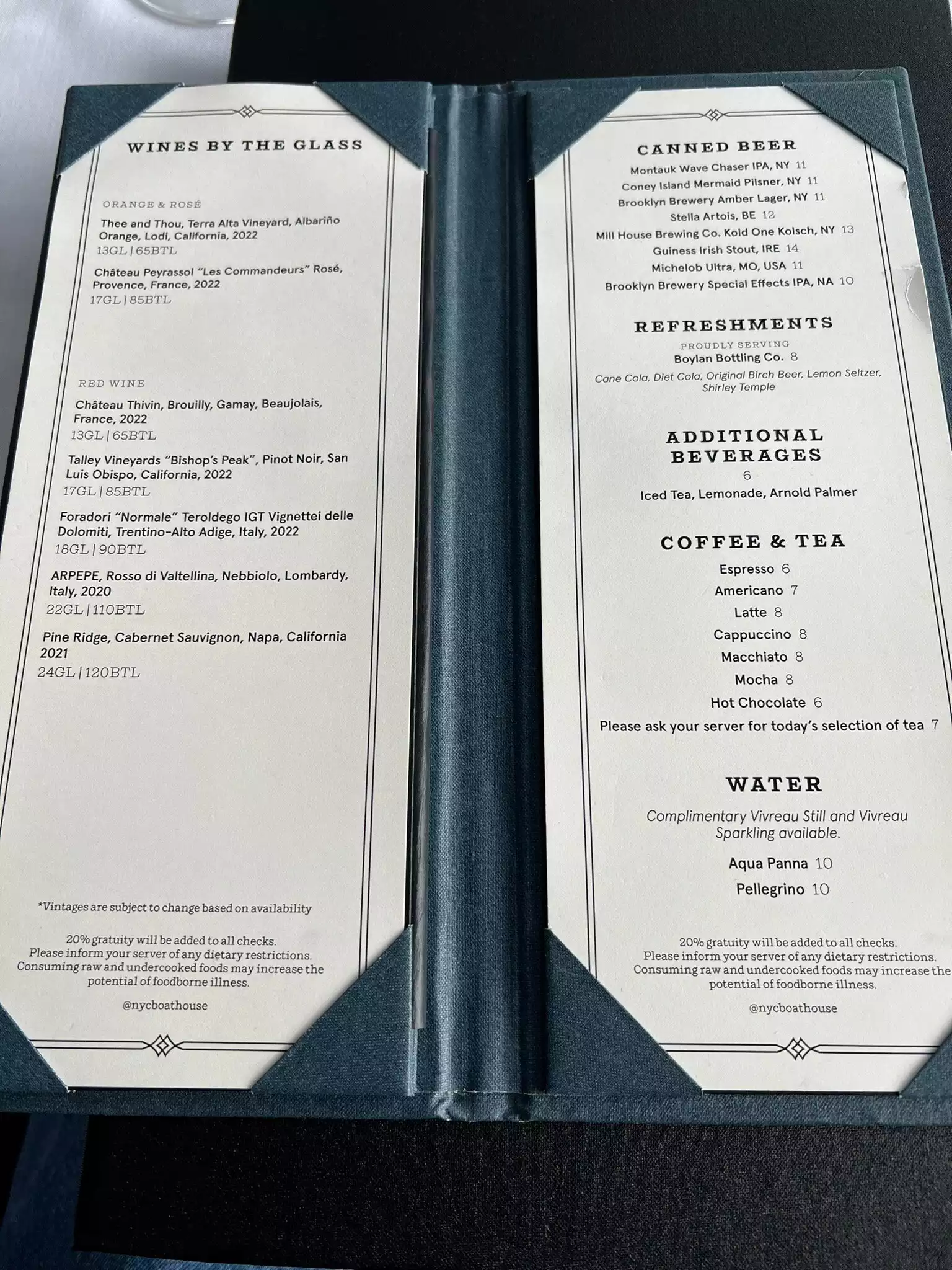 Brought two SMALL tins of beer, 24 dollars ! Did not get offered a glass , so had to drink it from the tin too! I know food & drink is expensive in NY but that’s just a rip off !