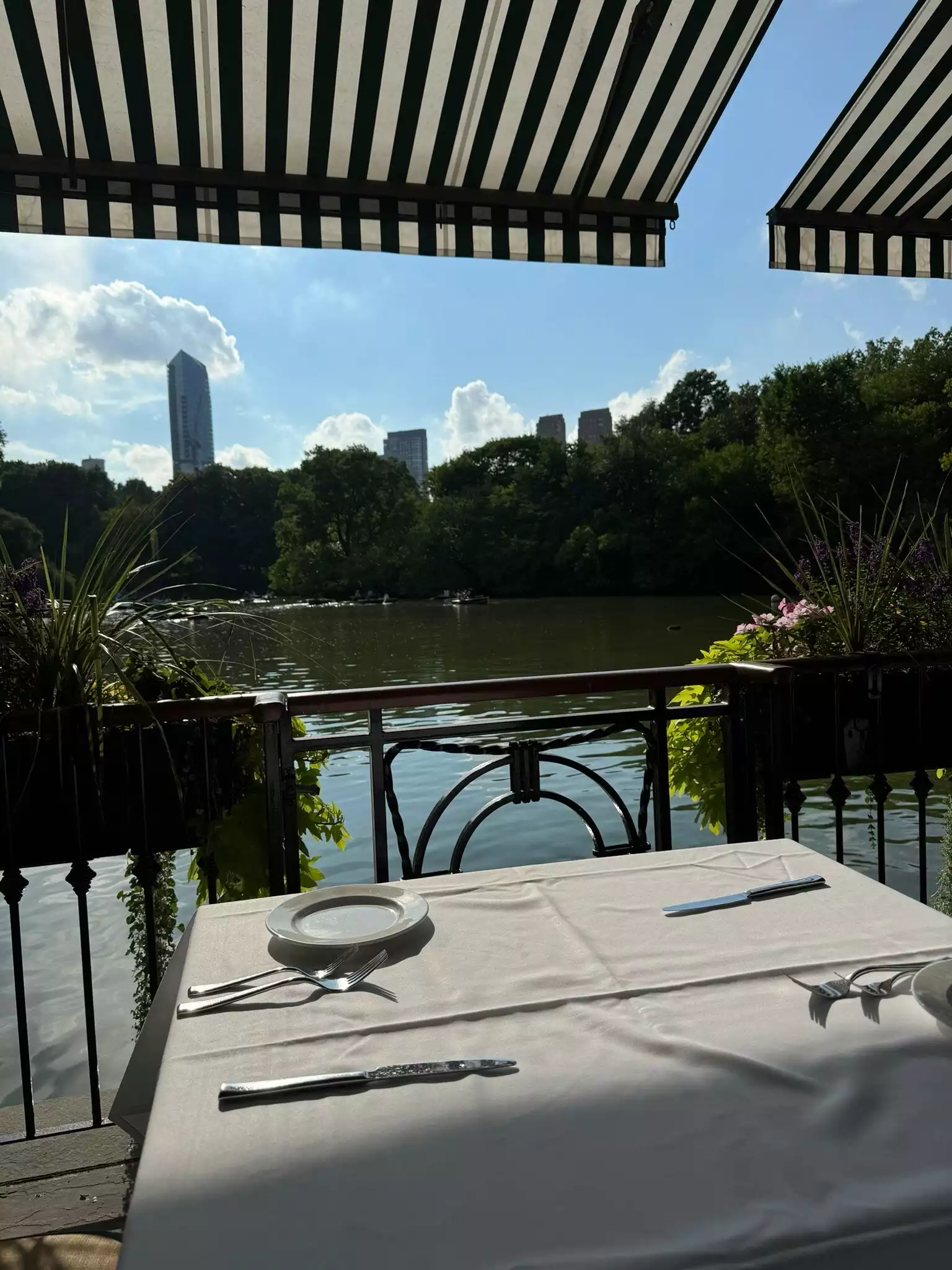 Booked in advance as soon as reservations opened 3 weeks out. Glad we did as on a Summer Friday at 1pm, it was super busy. Our waiter Clay was super attentive and really looked after us. The food and drinks were delicious and Clay made fuss of me as it was my 50th birthday. Loved the views of the boating lake and the location in Central Park.